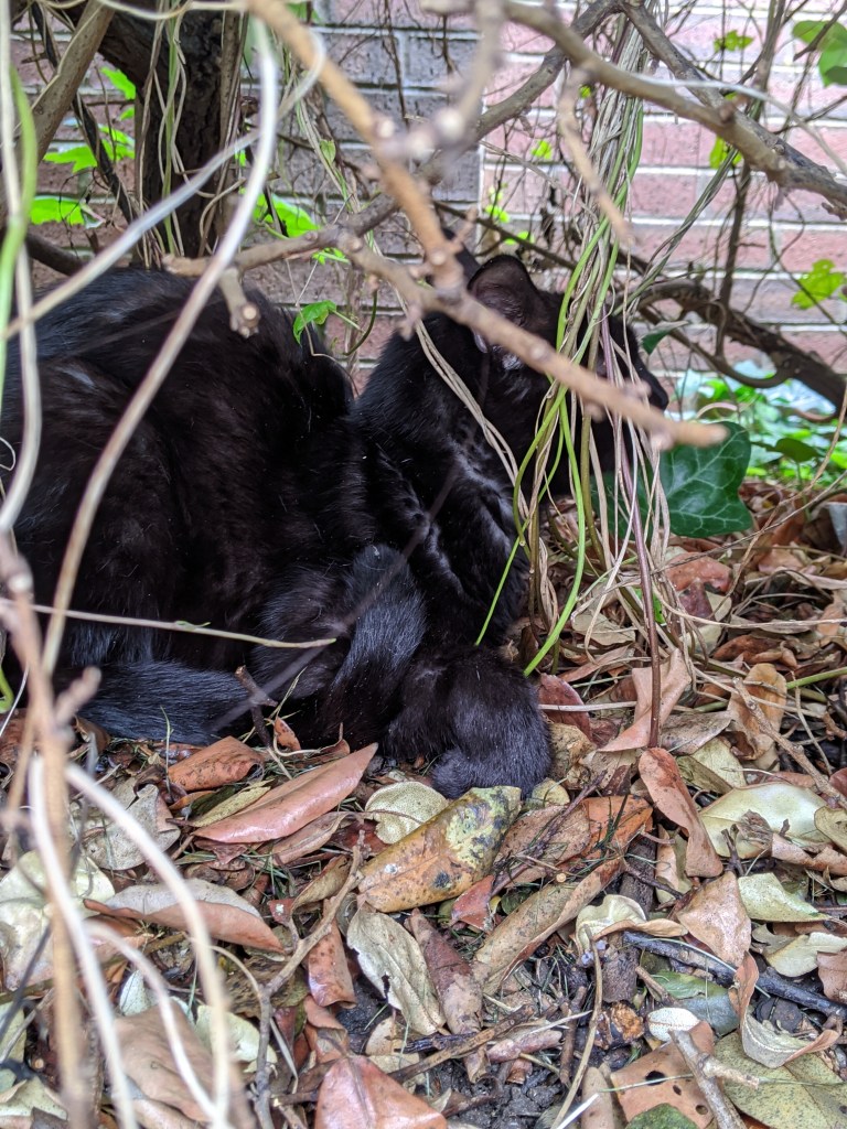 When trying to get a cat (or any injured animal I would imagine) is to use food. In some cases the animal may not have eaten at all, so use treats to coax them into a carrier or out of hiding so you can grab them and get a proper look at them. If I had done this right at the beginning, I probably wouldn’t have had to try and corner the little dude in the middle of a bush and get covered in god knows how many creepy crawlies. *shudder*
