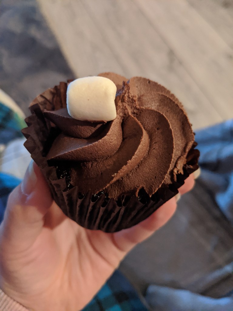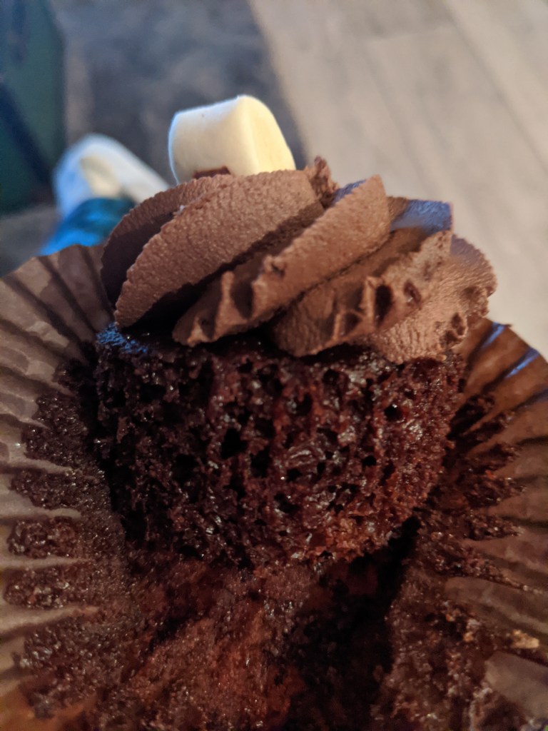 They are alright. They taste like sugar. They were nice and had a nice fluffy texture that you’d expect from cupcakes but I didn’t get much chocolate from them. The vegan marshmallow on top however was very nice – it has been so long since I had a marshmallow I almost forgot how yummy they are! The icing is buttercream, so it is pretty sickly, but they’ve actually got a pretty good ratio of cupcake to icing so it doesn’t send you directly into sugar shock.