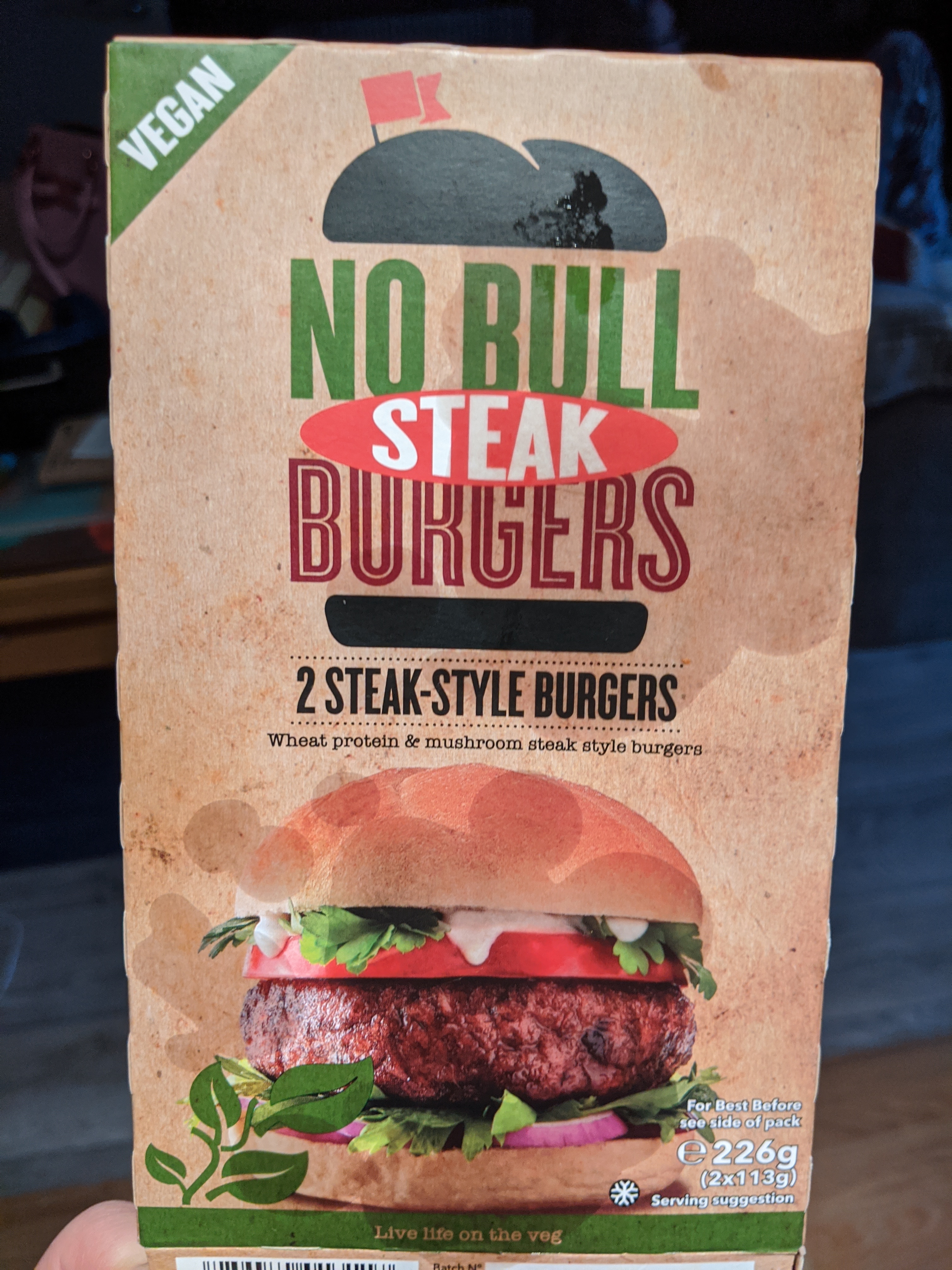The No Bull range can be found in Iceland and Asda (at least where I live) so are pretty easy to come by. These burgers were also £2, which is also pretty good value since they are quite big beefy burgers. Of course by beefy I mean thick…there is no beef in them. That would defeat the purpose of them being on the blog…