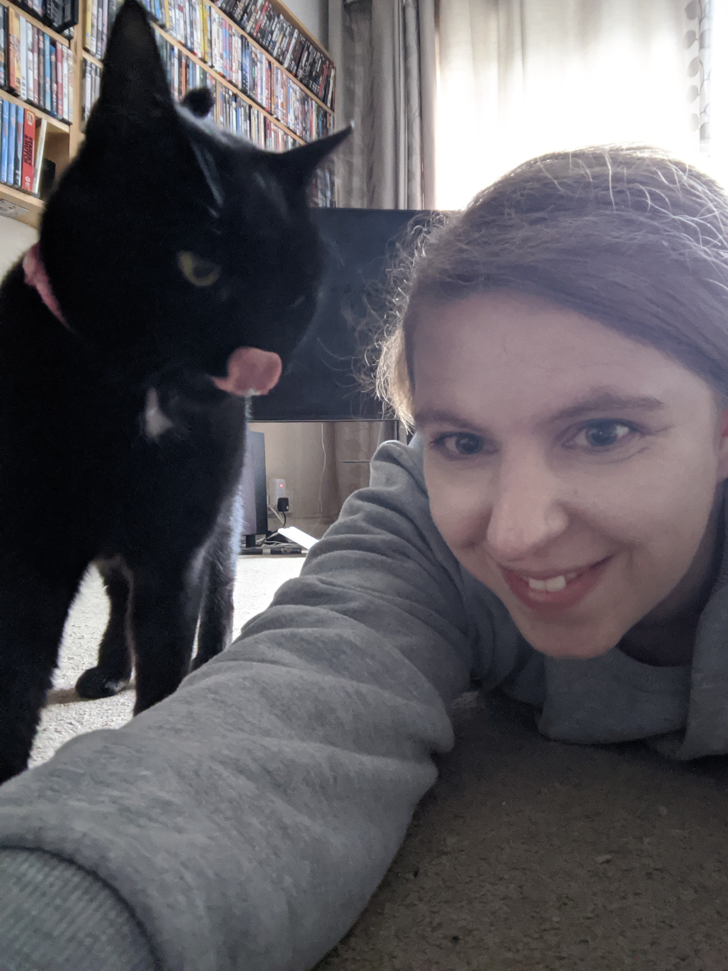 Thank you all for being here. I look forward to trying many many more vegan treats for you all. As a slight thank you, here’s a funny picture I took of me and my cat a few weeks back. It is not aesthetically pleasing in the slightest, but it makes me giggle so hopefully it will give you guys a good chuckle.