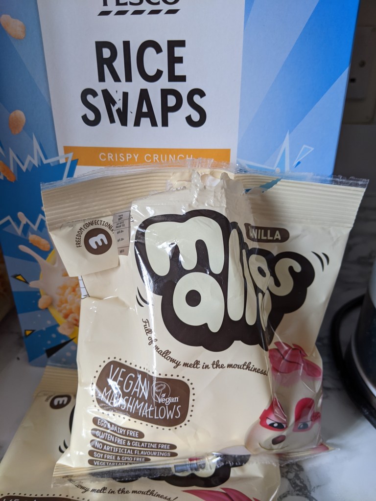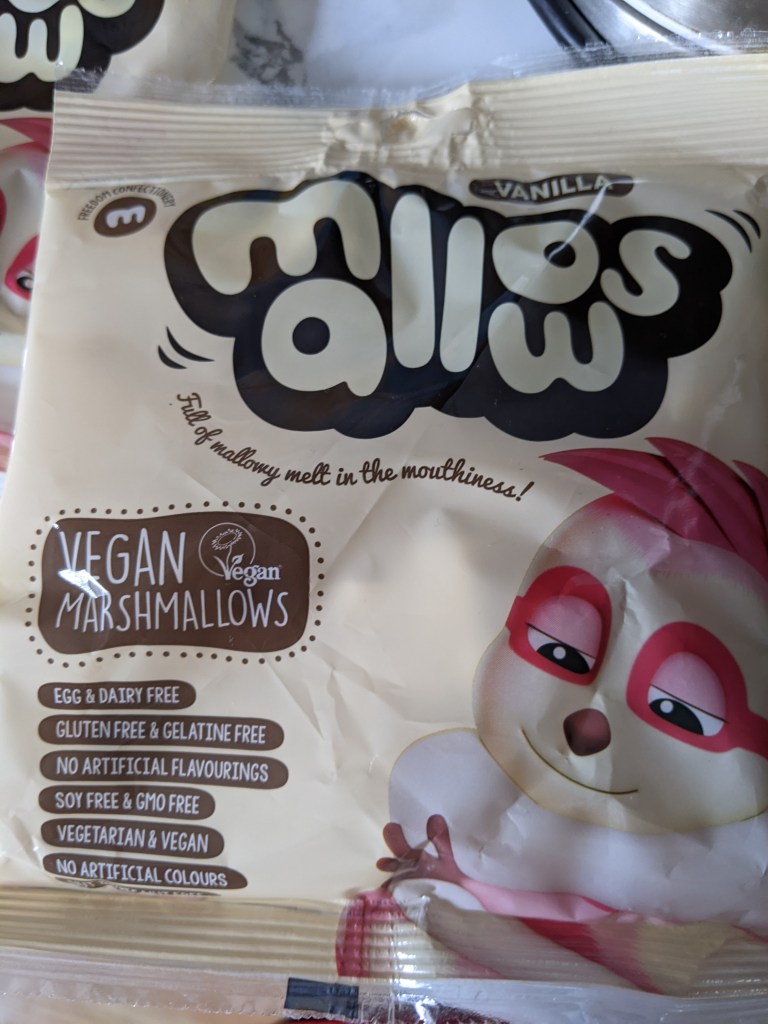 - 150g (or two pre-packaged bags) Marshmallows – again whichever vegan ones you can find. I hear the Aldi ones are amazing, but alas our store was too far to walk in the middle of a downpour.