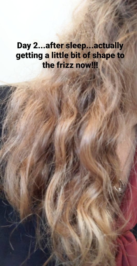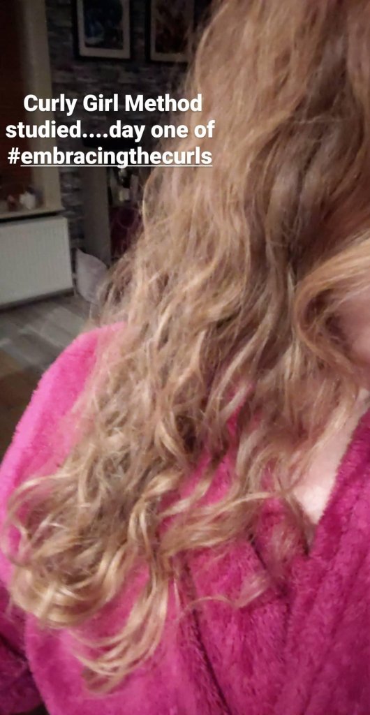 The one difficulty I am finding is that under the curly girl method you are not supposed to brush your hair. You brush it in the shower when wet with either your hands or a wide tooth comb, but otherwise you just…leave it..save for a quick run through with your fingers when needed. So for me that has been a hard thing to get used to because my daily routine was so used to getting up, brushing my hair and getting ready for the day. Though that being said my hair doesn’t get as knotty as I thought it would be, possibly because my hair is in a more natural state and being left alone to just….hang.