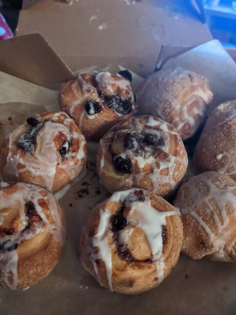 These are basically the same as the cinnamon scrolls, but with mince pie filling instead. They are…ok. Downside with them is that because they are big balls of dough, you don’t get a lot if mince within them. You either get a massive bite of mince, or a massive bite of dough, but not really a good mix of the two.