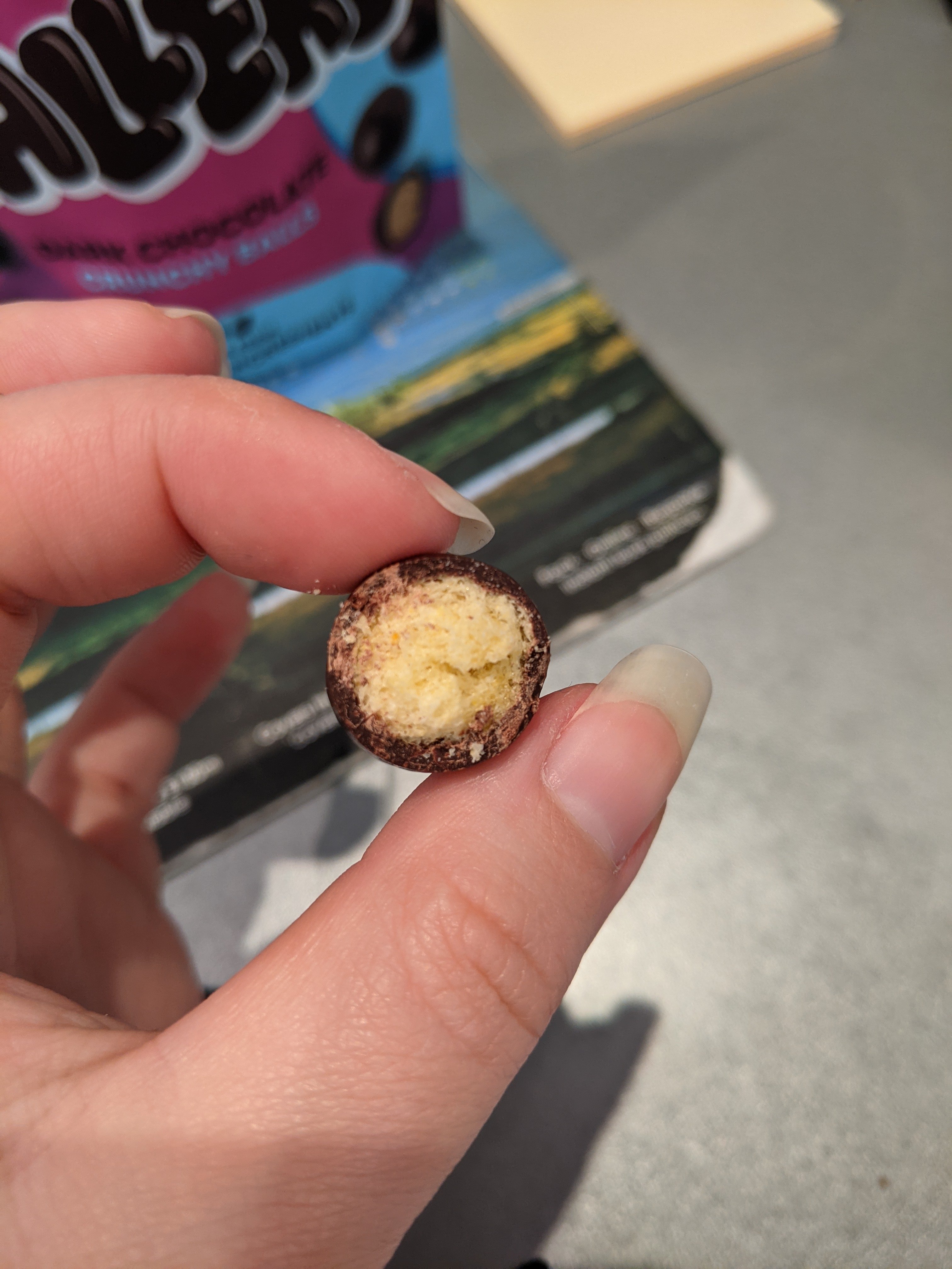 A lovely person at work gifted these to me as she found them at her local corner shop. These things are basically malteasers, but oddly enough are actually nicer than malteasers.