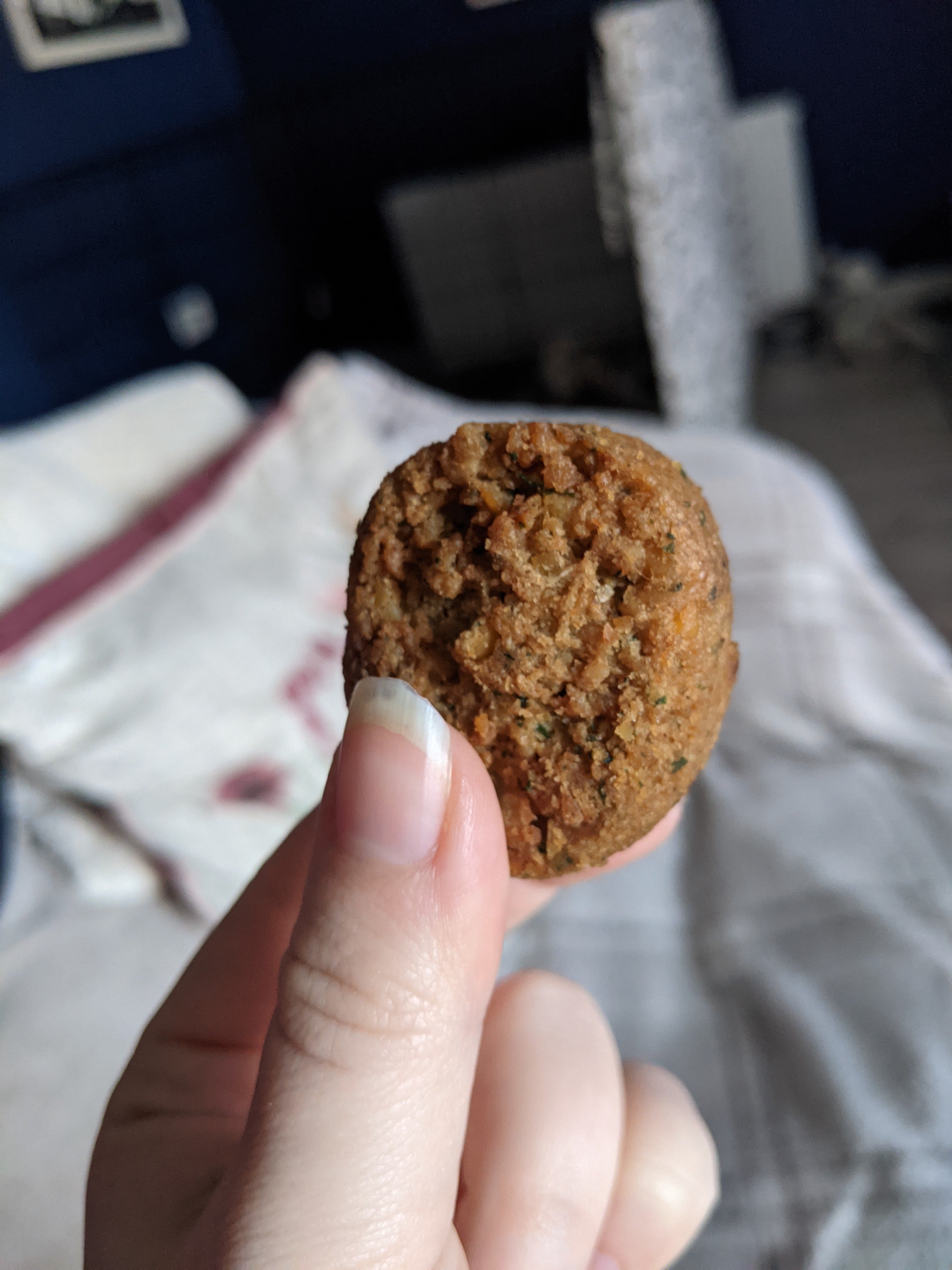 Nope. It wasn’t. Falafel tasted good, these were actually very yummy. But it also took me half a tub of humus to be able to finish even two little balls. Plus a whole glass of water! I just don’t get how such a tiny bit of food can require so much water?!