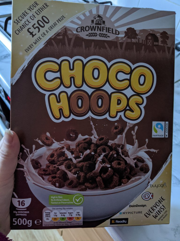 There isn’t much else to say about these: They are hoops and they taste like chocolate. That’s all they are and they do actually taste chocolatey. They can get quite sickly if you have too big a bowl of them, but that also may just be the sugar shock setting in. The packet was also huge considering that it only cost £1.