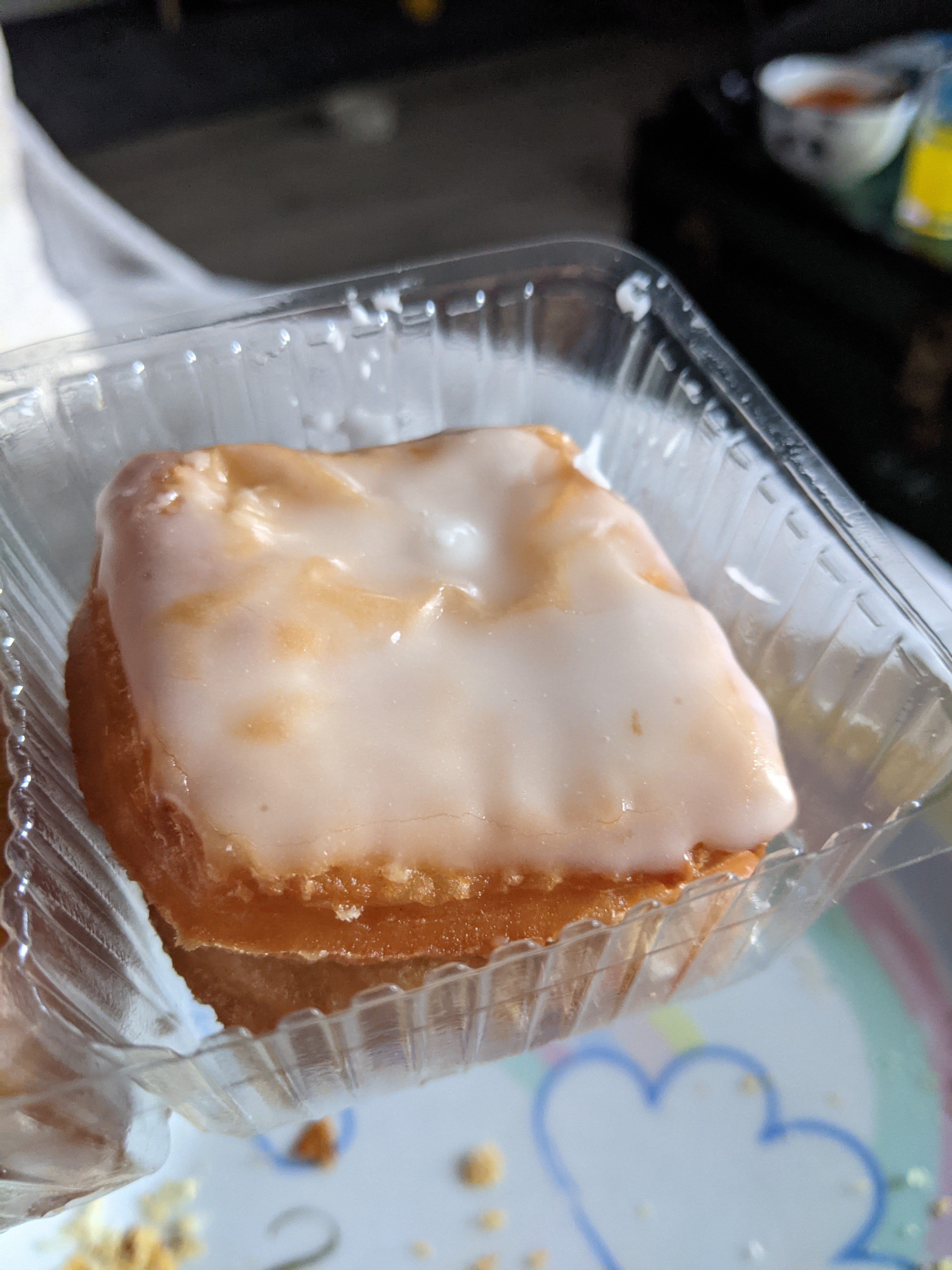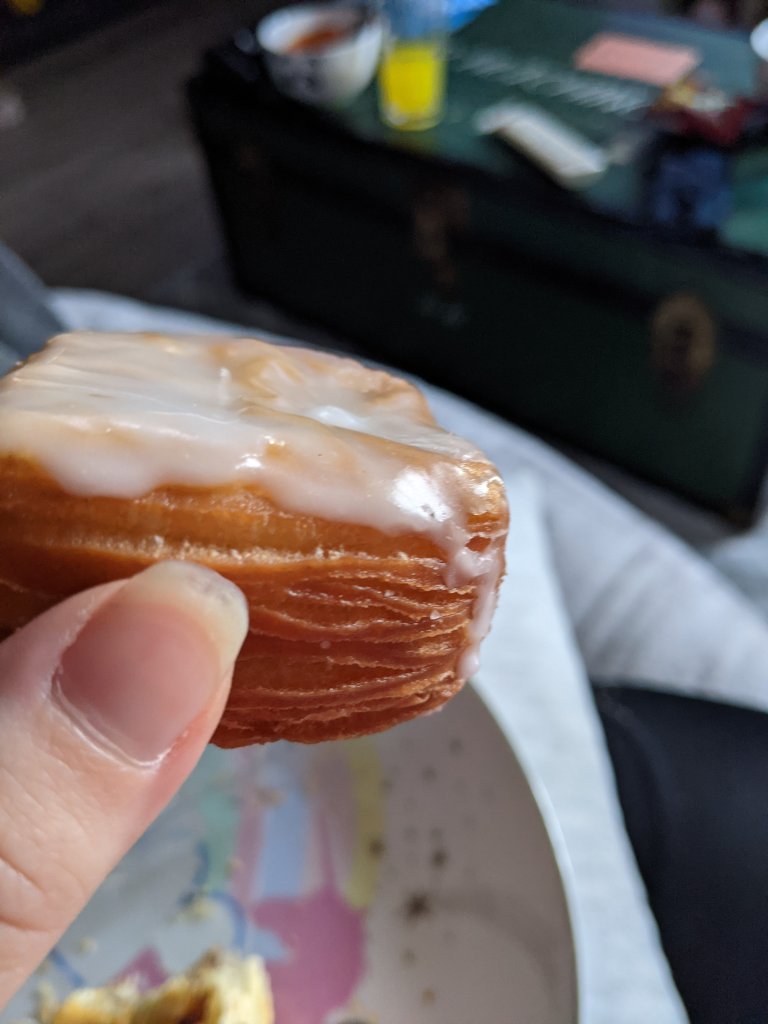These are basically flaky donuts…or very sweet croissants. They were doughy, but also flaky…if that even makes sense. They taste exactly like donuts do, but are lighter and not as stodgy as donuts can be. The sugar icing drizzle also gives it a nice little extra sweetness to it. They may have come in a pack of 3 but one was actually very satisfying. I think if you tried to eat the whole pack in one sitting you would end up feeling rather sick.