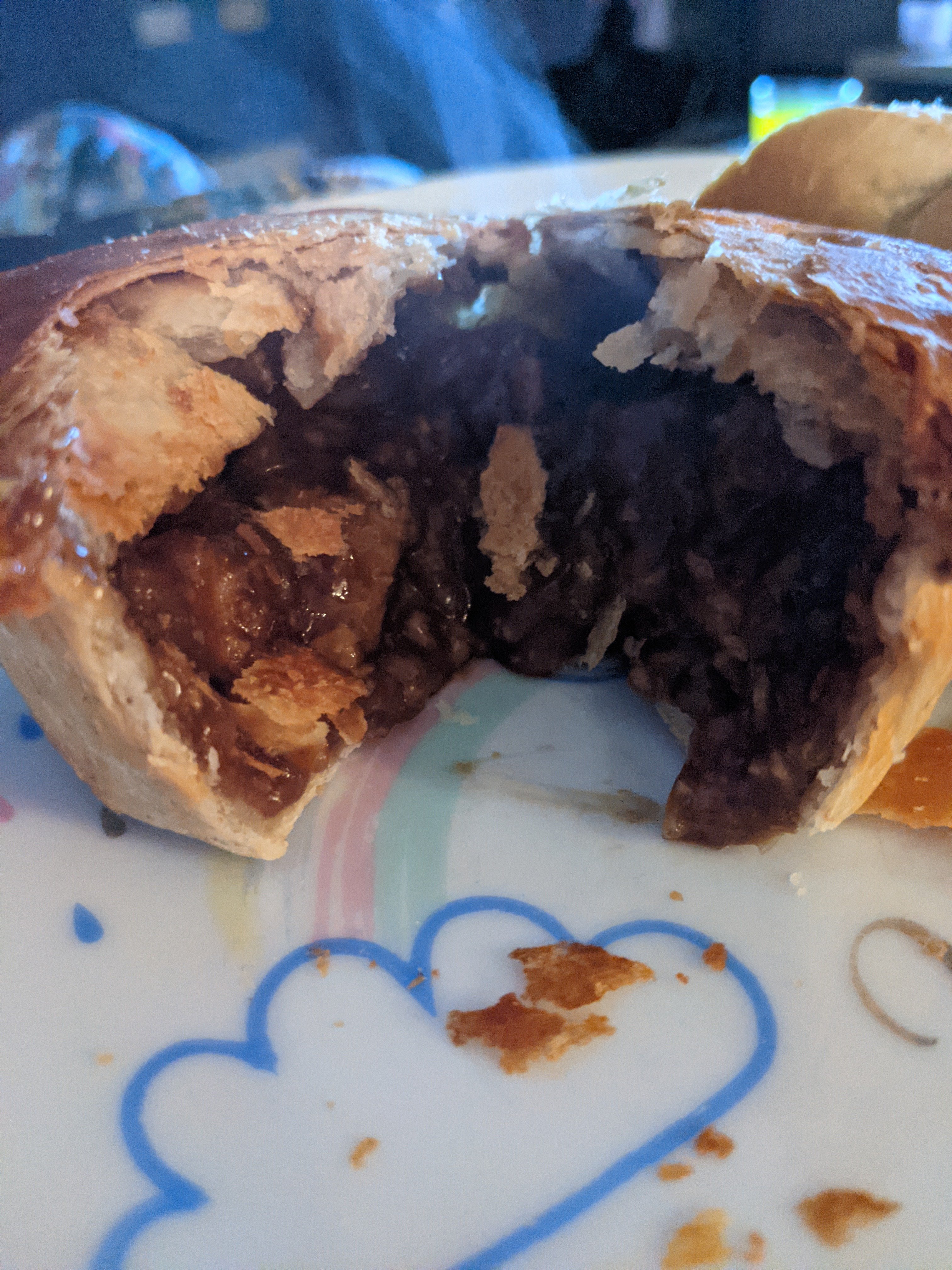 The downside was that there was barely any filling. The pie was maybe half full. Which was disappointing as it did taste really good and it would have been nice to have some more filling in to compliment the amount of left over pastry. The pie crust was quite dry, so more gravy would have been good to make it not so bland and flaky.