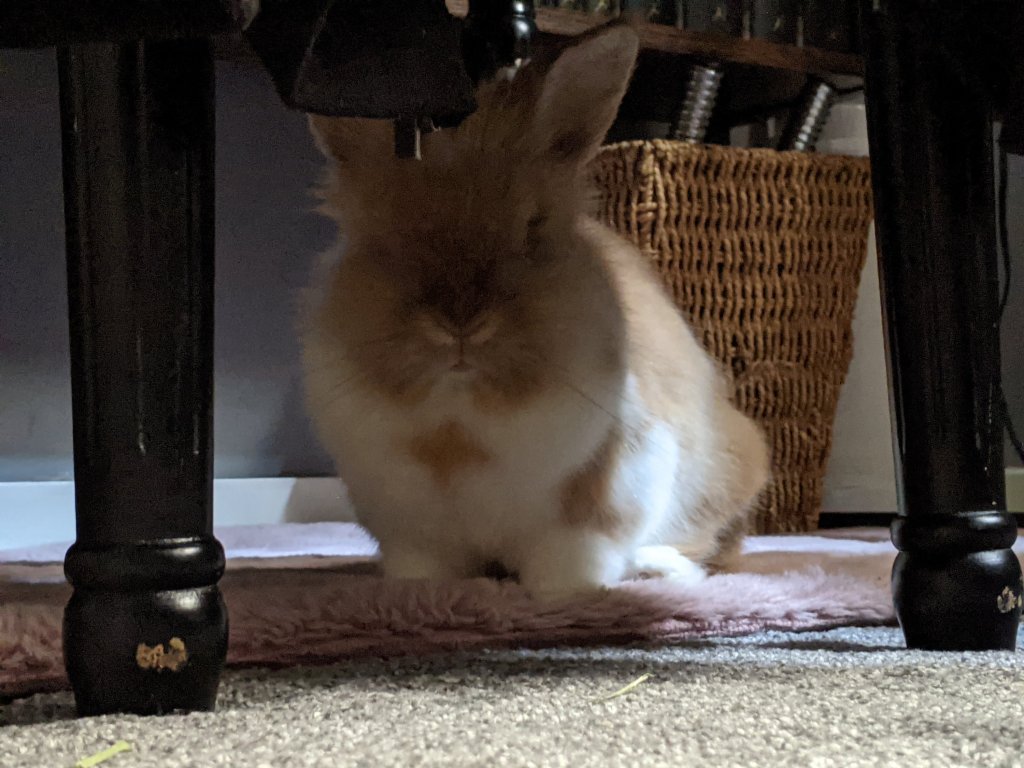 We finally caved and now let Lola have supervised playtime in the bedroom, on the fresh new carpet. The binkies and zoomies have doubled and she has claimed under the desk as Her Spot.