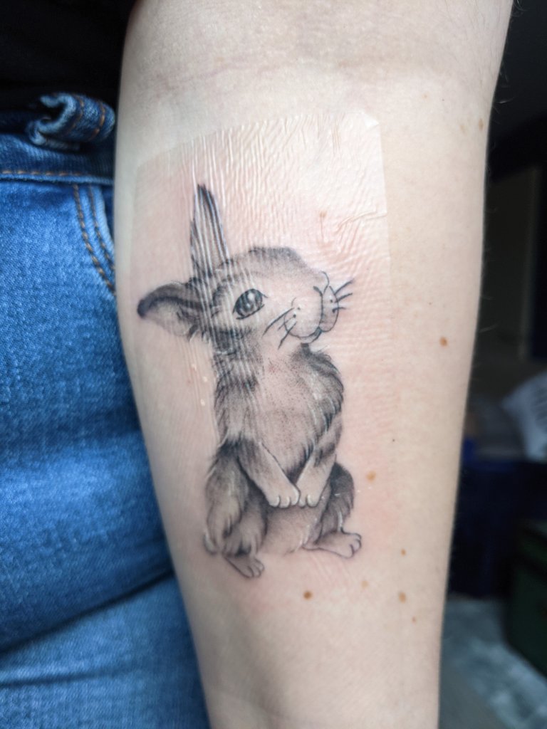 I got a black and white bunny and honestly it is the most perfect tattoo. That little face never fails to make me smile and I have not stopped staring at it since I got it. Now when I am having a hard day, I can look at my arm and remember that my babies are still with me, and will now forever be with me no matter where I may go next.
