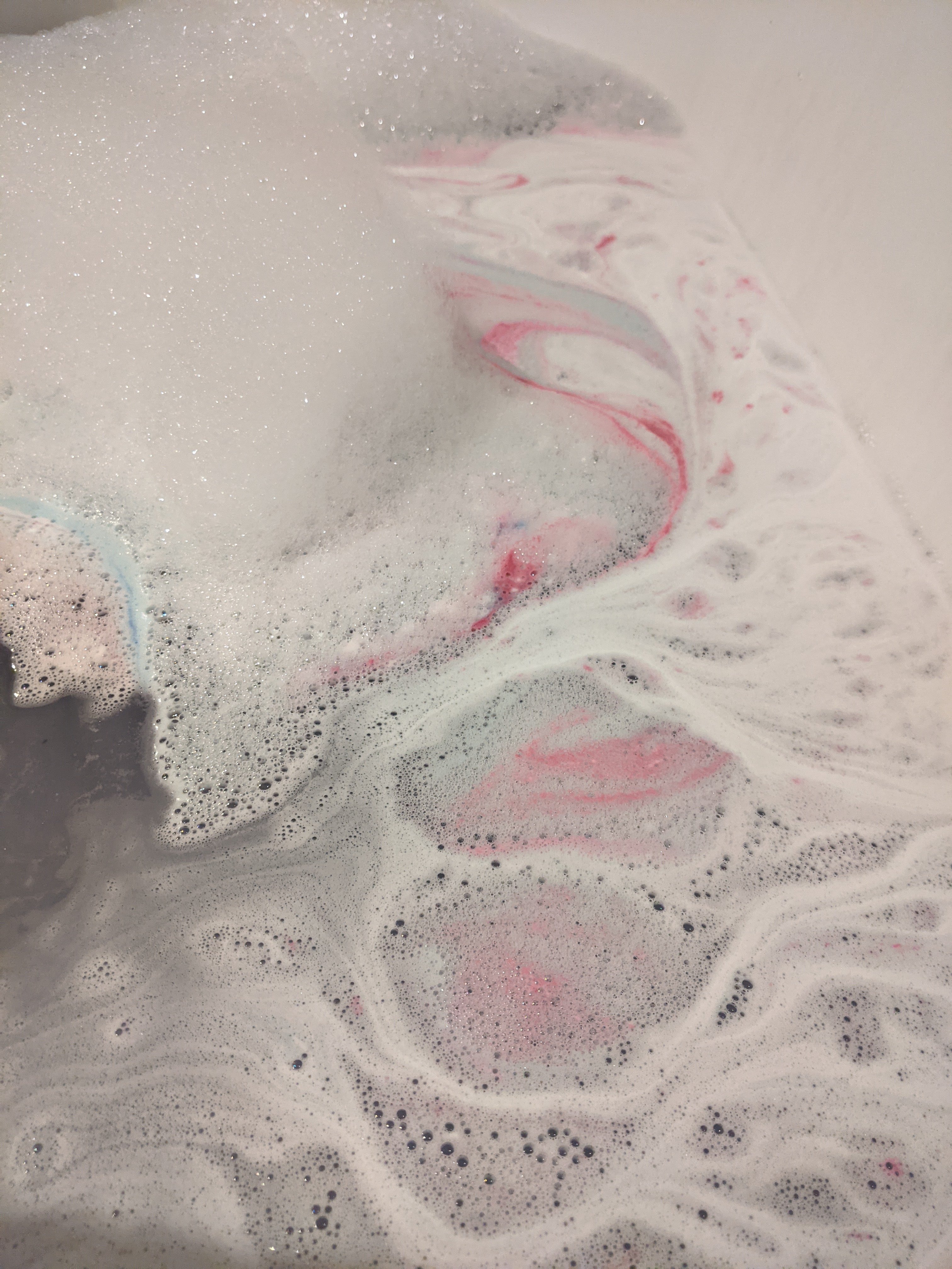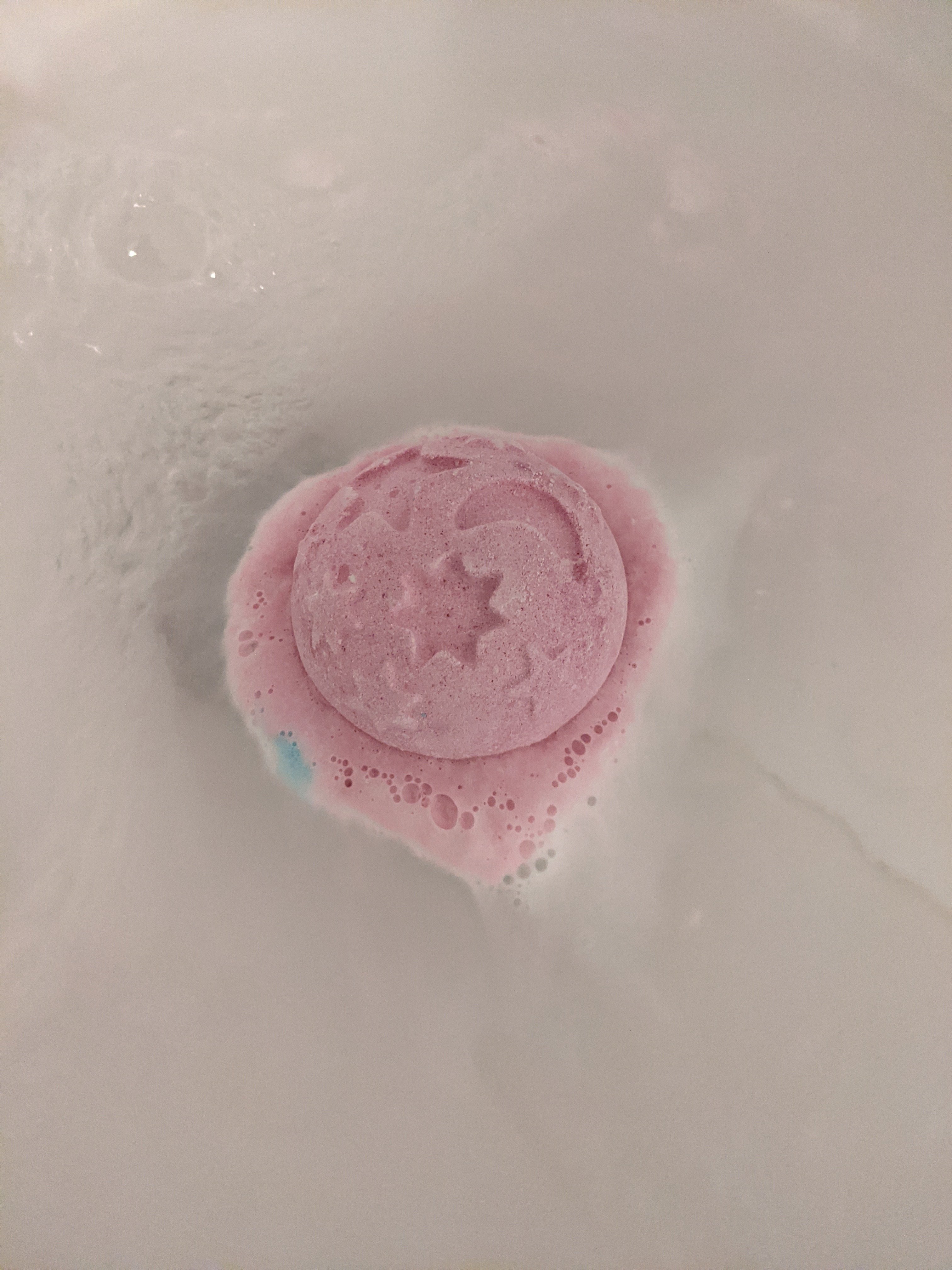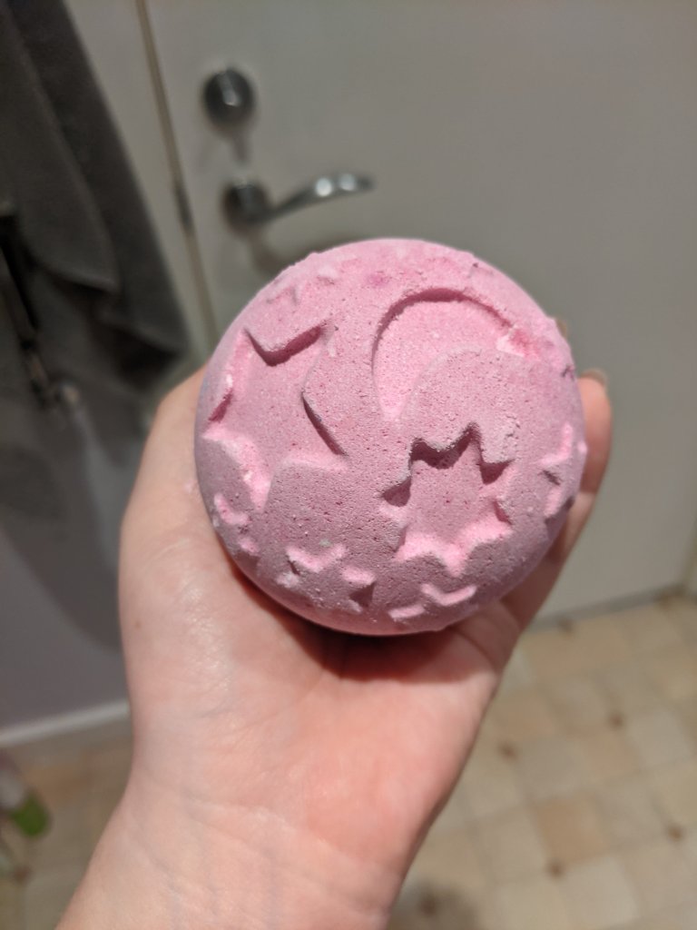This was definitely a relaxing bath bomb. It had a really strong lavender fragrance to it (so be warned) so once mixed with the hot water it was ideal relaxing tub time. It was also really relaxing watching the bath bomb melt: It started pink, then moved to blue, and then ended with purple. By the end, my bath tub looked like a glittery galaxy. It was also weirdly hypnotic to lay there and run my hands through the water and watching the glitter and colours swirl around me. I am normally really bad at sitting still – I get restless very easily and have to always feel like I am achieving something – but this bath bomb actually did make me slow down a bit and just enjoy soaking in a tub for a while.