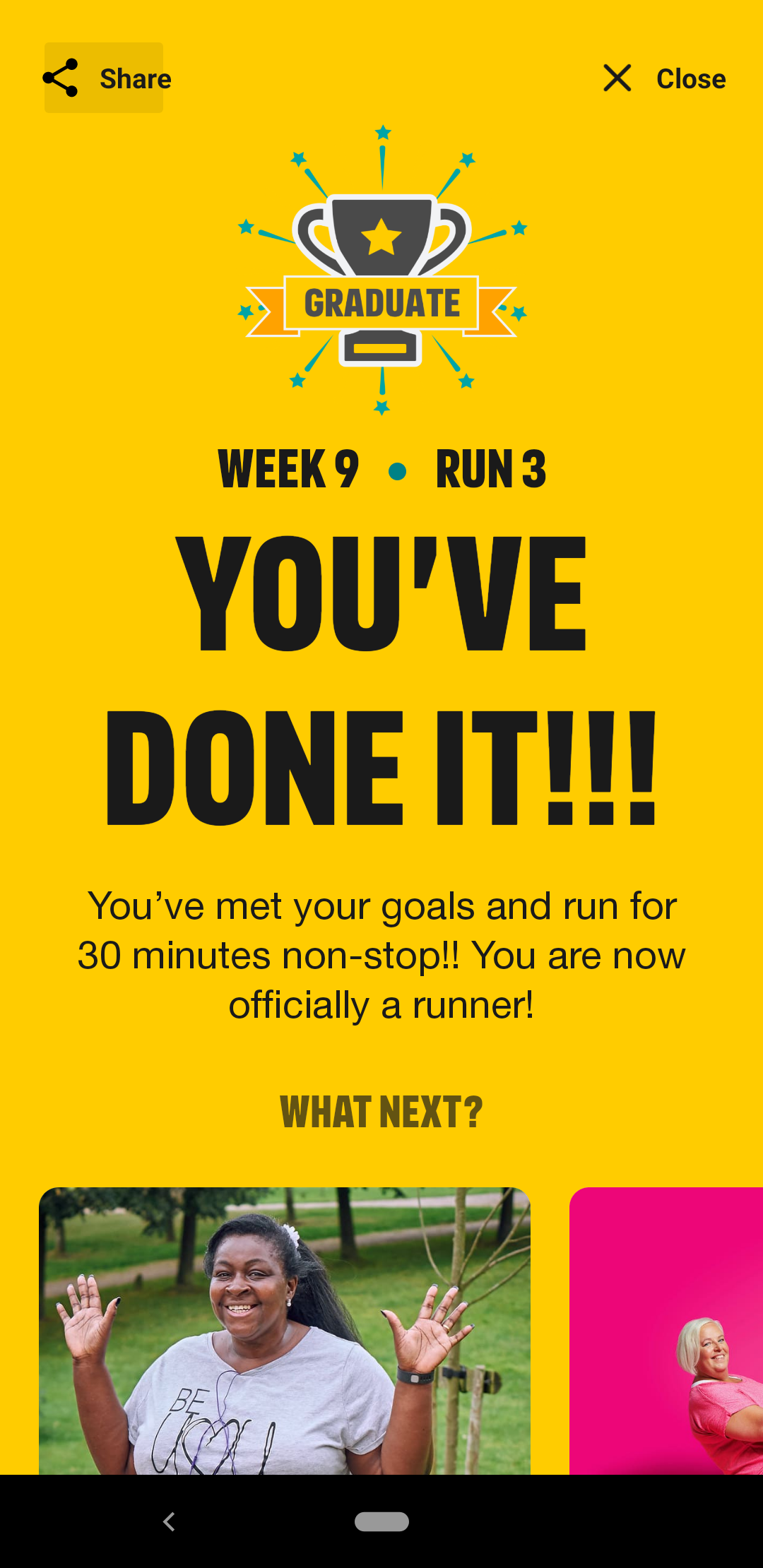 This app also allowed me to enjoy running again. It built up in such a way that even after a 25 minute run, I didn’t feel too gassed and would actually have been happy to run for a bit longer. In the later weeks as well, you do start to recognise what your comfortable pace is and also when you hit that rhythm, you fully understand the elusive ‘runners high’. I did a 5k run as my penultimate run in week 9 and actually beat my goal! I had wanted to see if I could run 5k in under 40 minutes (as I say, I have never been a fast runner so was not expecting anything ground breaking) and I managed it in 39 minutes! It may seem small, but when you start running you realise what a massive difference a few seconds can make to your entire mood. Also for someone who hasn’t run properly in about 2 years, it felt so good to enjoy running again.