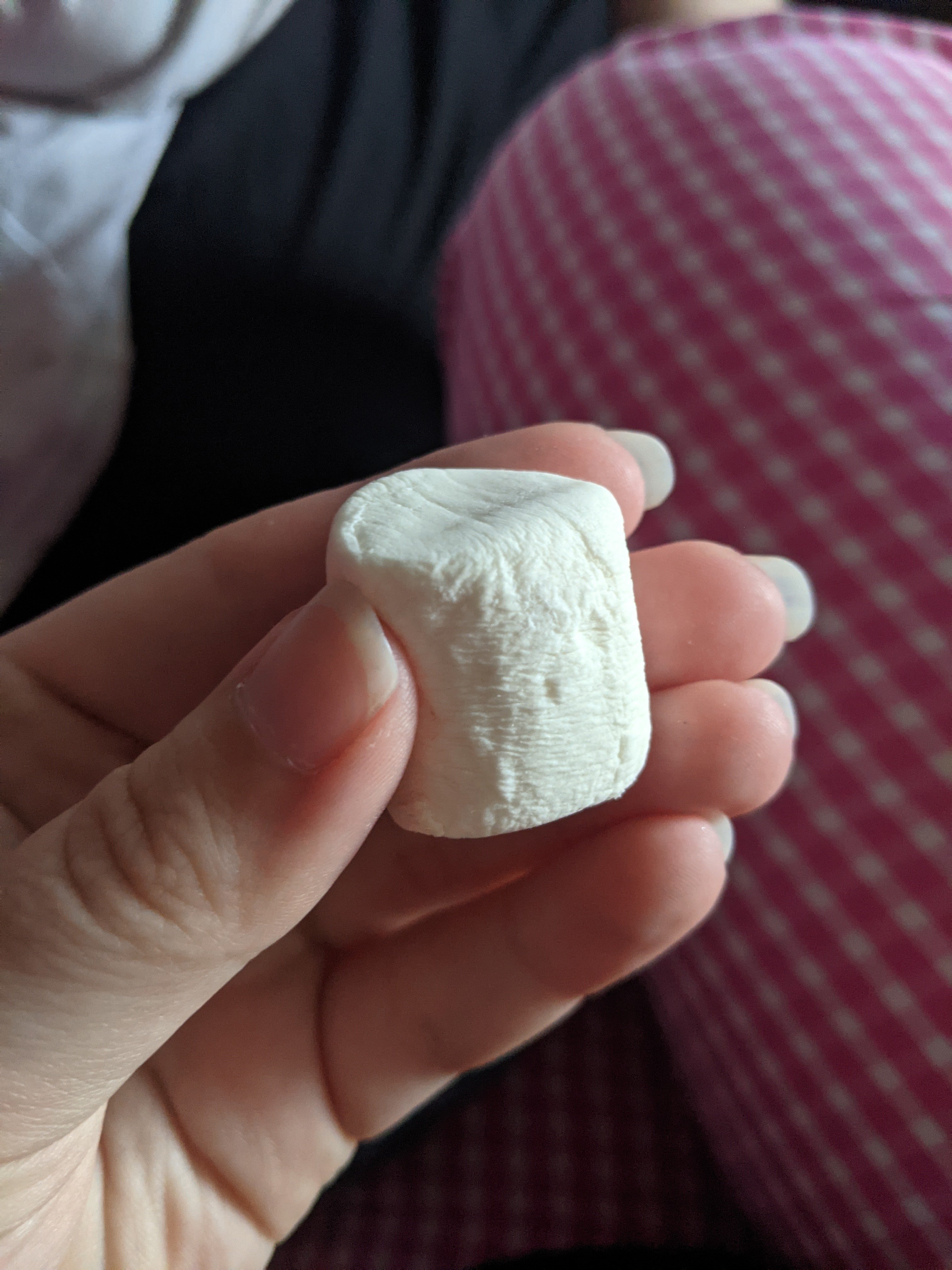 Size wise, I prefer them for being on the bigger size. Mini marshmallows are only good for drinks, but the massive American style ones are just intimidating. As a side note, any of my American readers, can you confirm whether all of your marshmallows are huge? The ones we have on sale here in the UK as being ‘american imported’ are genuinely like pillows – at least 3 of these marshmallows put together. These are a decent size, and you find that two or three are more than enough to satisfy any sugar cravings you may have.