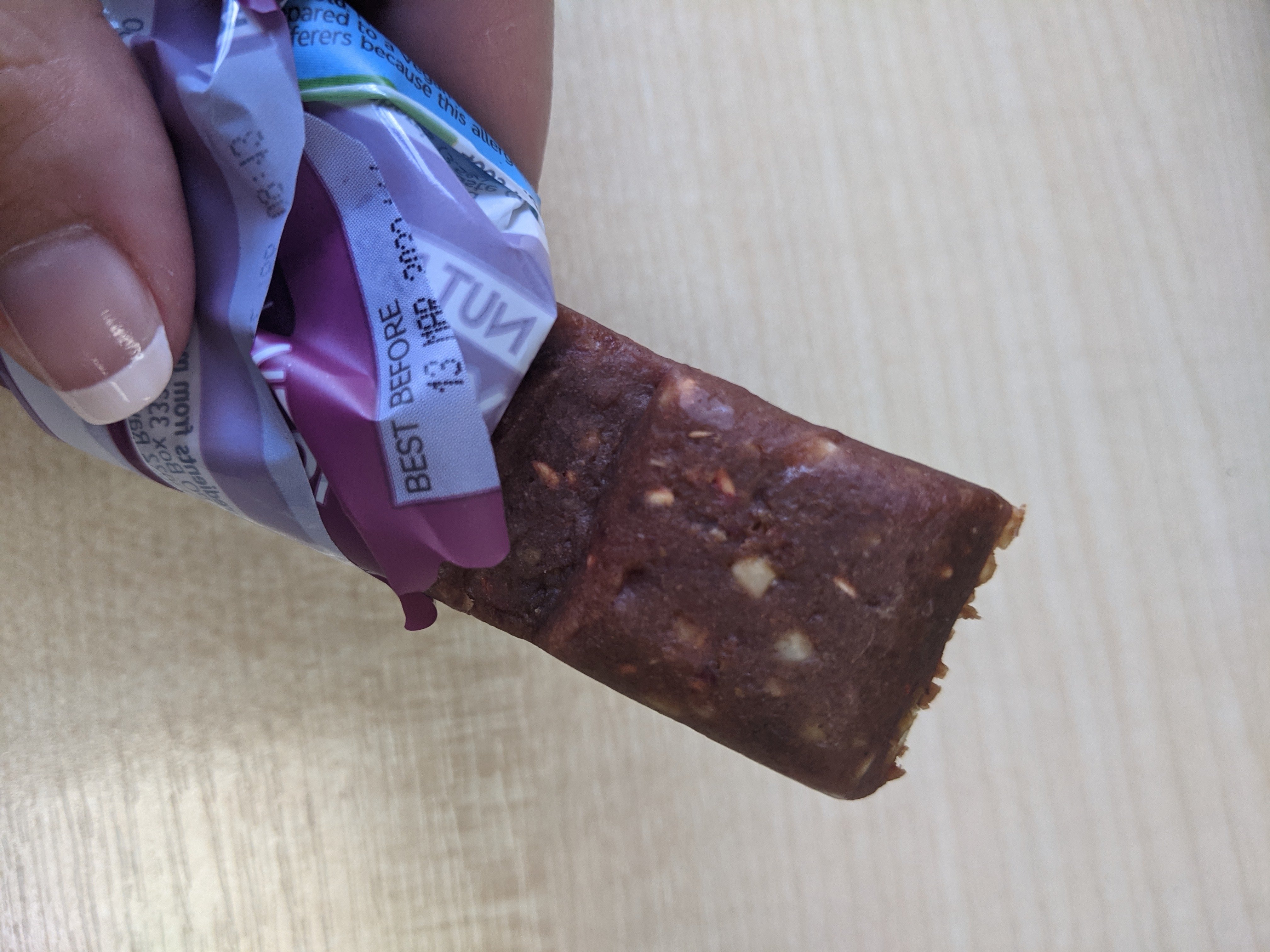They have an odd texture too: They are quite soft, because they do seem to just be smashed fruit and nut butter, but you get the odd chunky bit of nut (or pit? or skin?) that I swear could crack a tooth. You also spend the next twenty minutes trying to pick tiny little bits of seed or nut out of your teeth, so that’s quite a downer.