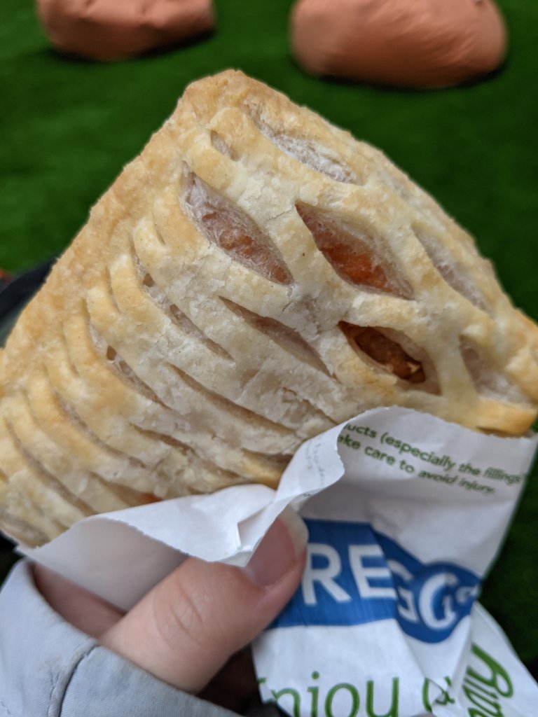 I am a big fan of the sausage rolls and the steak bake. Granted they are not the most fantastic option out there, but they are easily available and stupidly cheap, so you can’t really go wrong with one of their treats. Their new sausage, bean and cheese bake finally hit my local shop so I of course had to at least give it a go.