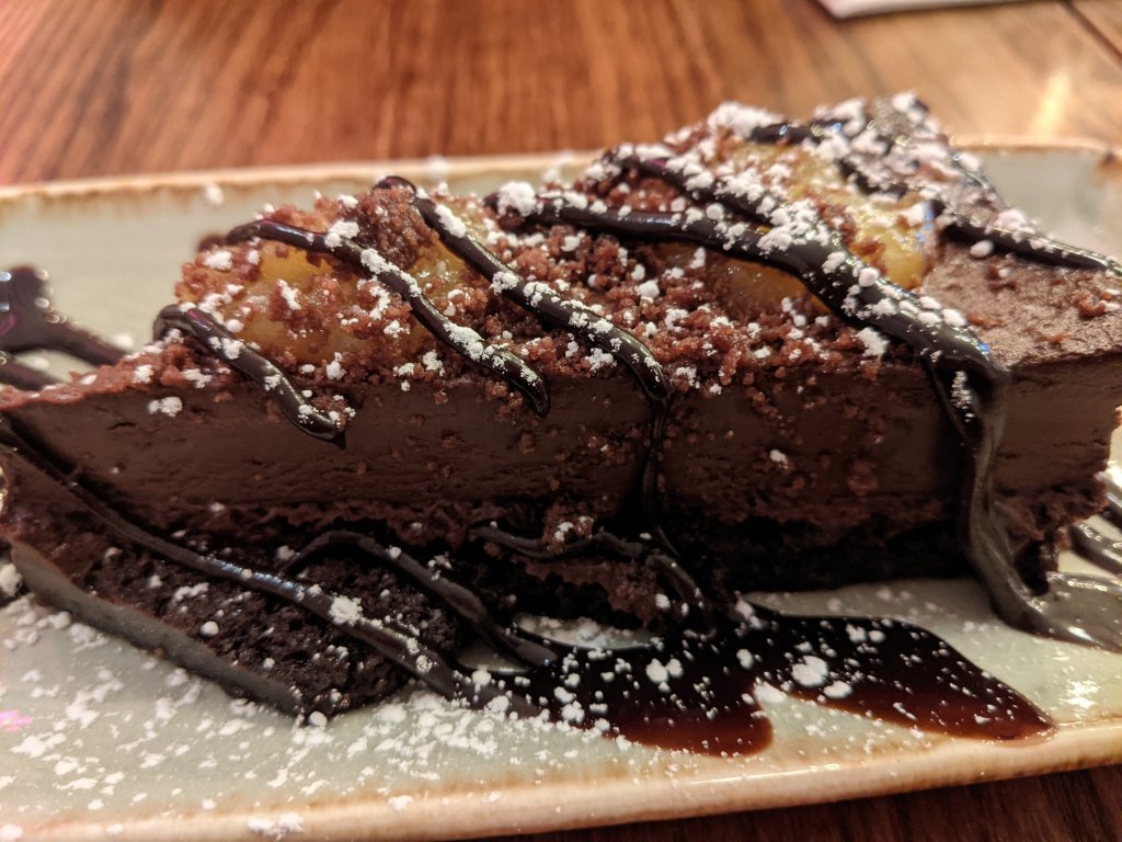 Price wise, it is actually a steal. This dessert alone was £2.99. TWO NINETY NINE. For a really big portion of very decadent tart. That alone makes it worth while, because normally for this level of dessert you’d likely have to go to a specialist baker or very posh cake shop. It also meant that I don’t feel like I have really wasted money when I can’t finish the whole plate. I still felt wasteful, as I left at least half of it (before my stomach burst) but at least I didn’t also feel the guilt of spending a lot of money on something to not even finish it. If you fancy something special though, I would recommend maybe sharing this one.
