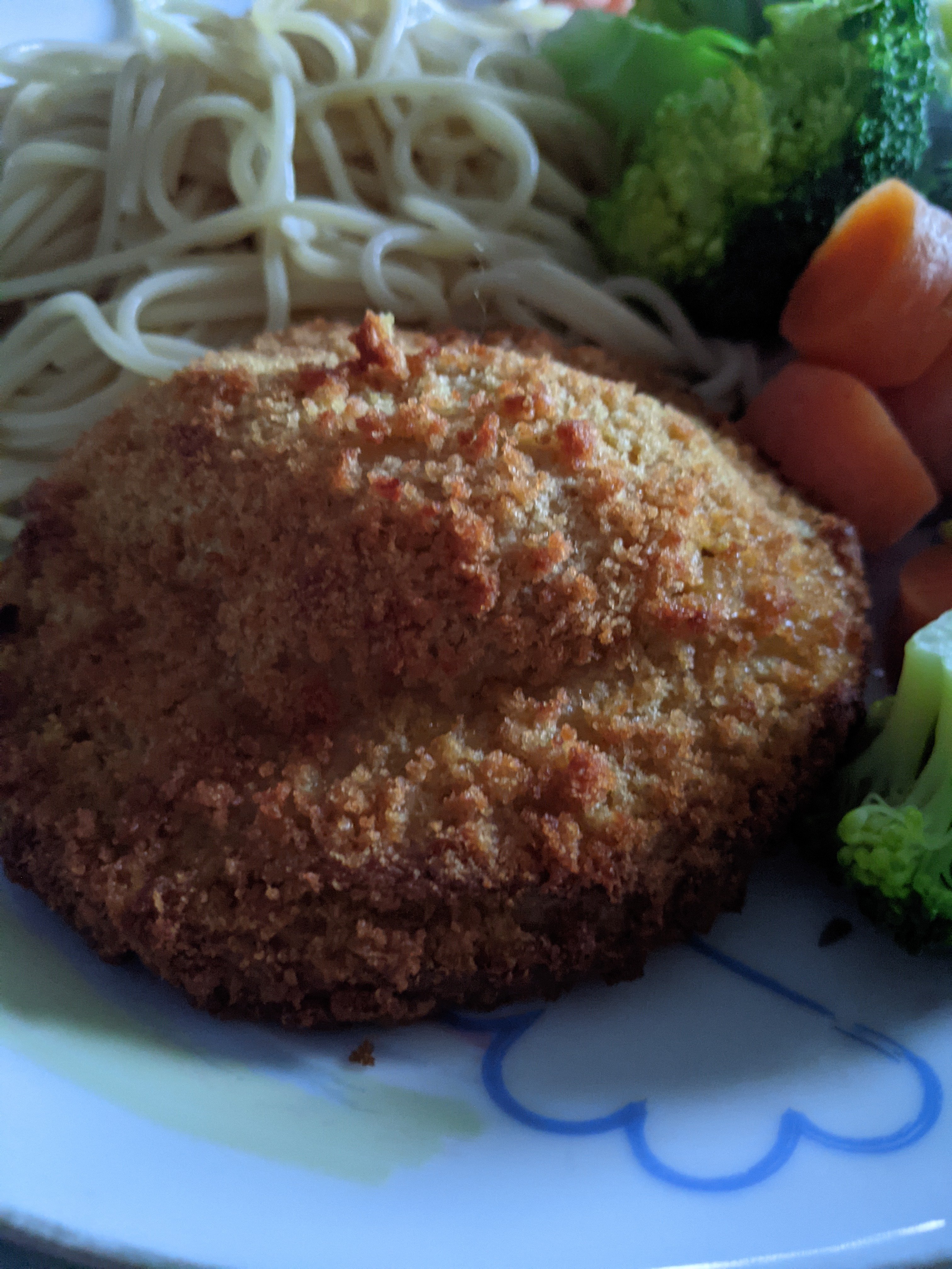 The outside is a crispy coating – exactly what you would expect with a kiev – and the inside had the usual Wicked! tofu meat substitute. I am assuming it is tofu because it had that very flaky texture, I imagine to try and replicate a chicken kiev? I also think it was tofu because it just absorbed a lot of the katsu flavour while it was cooking. It was very light and the outer shell of the kiev gave it a nice, crunchy texture.