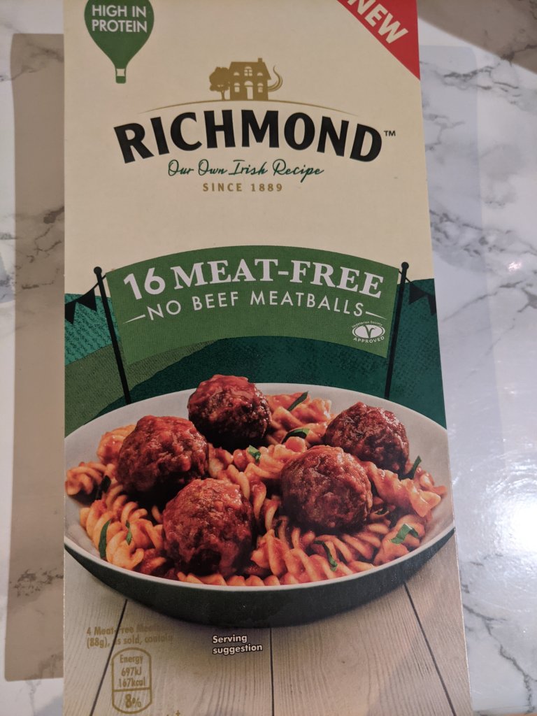 I am a big fan of the Richmond meat free sausages, so was very excited to see them expanding their range slightly. I noticed these, along with some bacon rashers that I will also be trying in the next few weeks. The meat free meatballs currently on the market have been very slim, and the one or two I have tried have either turned into blocks of cement when cooked or are just mushy no matter how much you try to cook them.