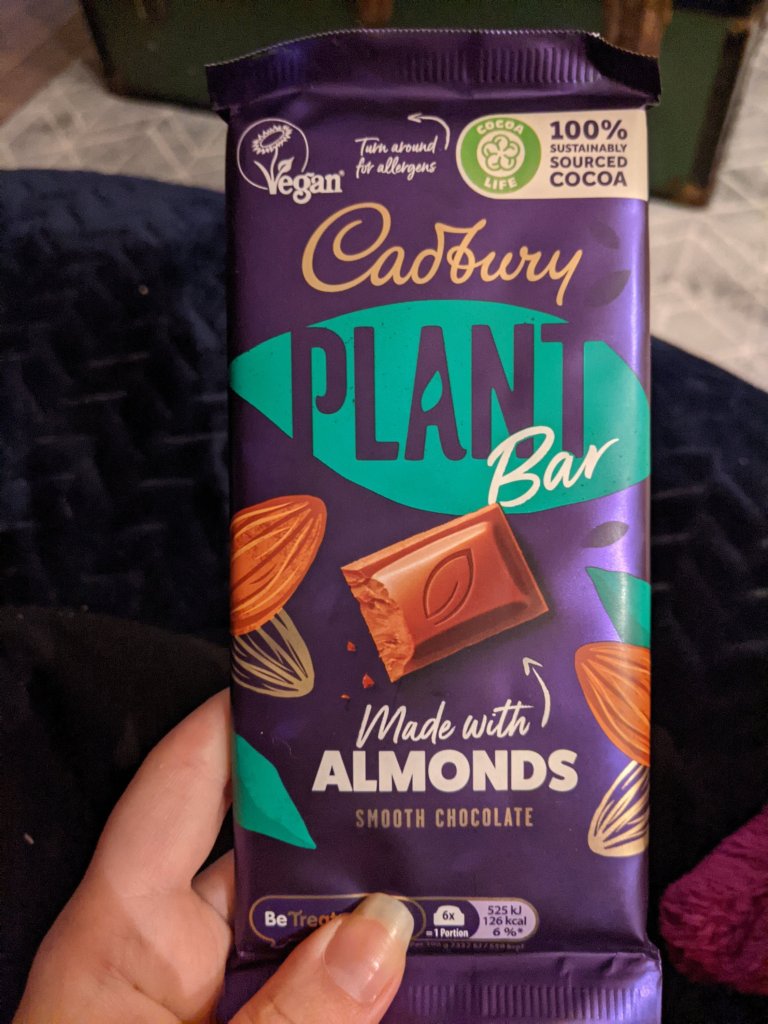 This is proof that veganism is truly taking off. Cadbury’s – possibly the biggest chocolate maker in the world has released not one but TWO vegan chocolate bars. It is made with almond milk instead of dairy, and I believe the flavours are smooth chocolate and salted caramel. I naturally went with the plain chocolate first to see how the chocolate actually tastes as just a base product.