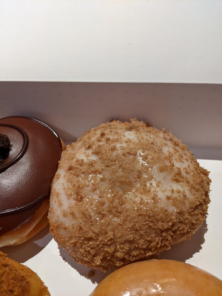 I have to say I think this one is the winner. It really did taste like an apple pie! The doughnut itself was the light and fluffy sponge that we know Kirspee Kreme for, and the topping was a nice crunchy crumble that gave a nice extra texture of the doughnut as a whole.