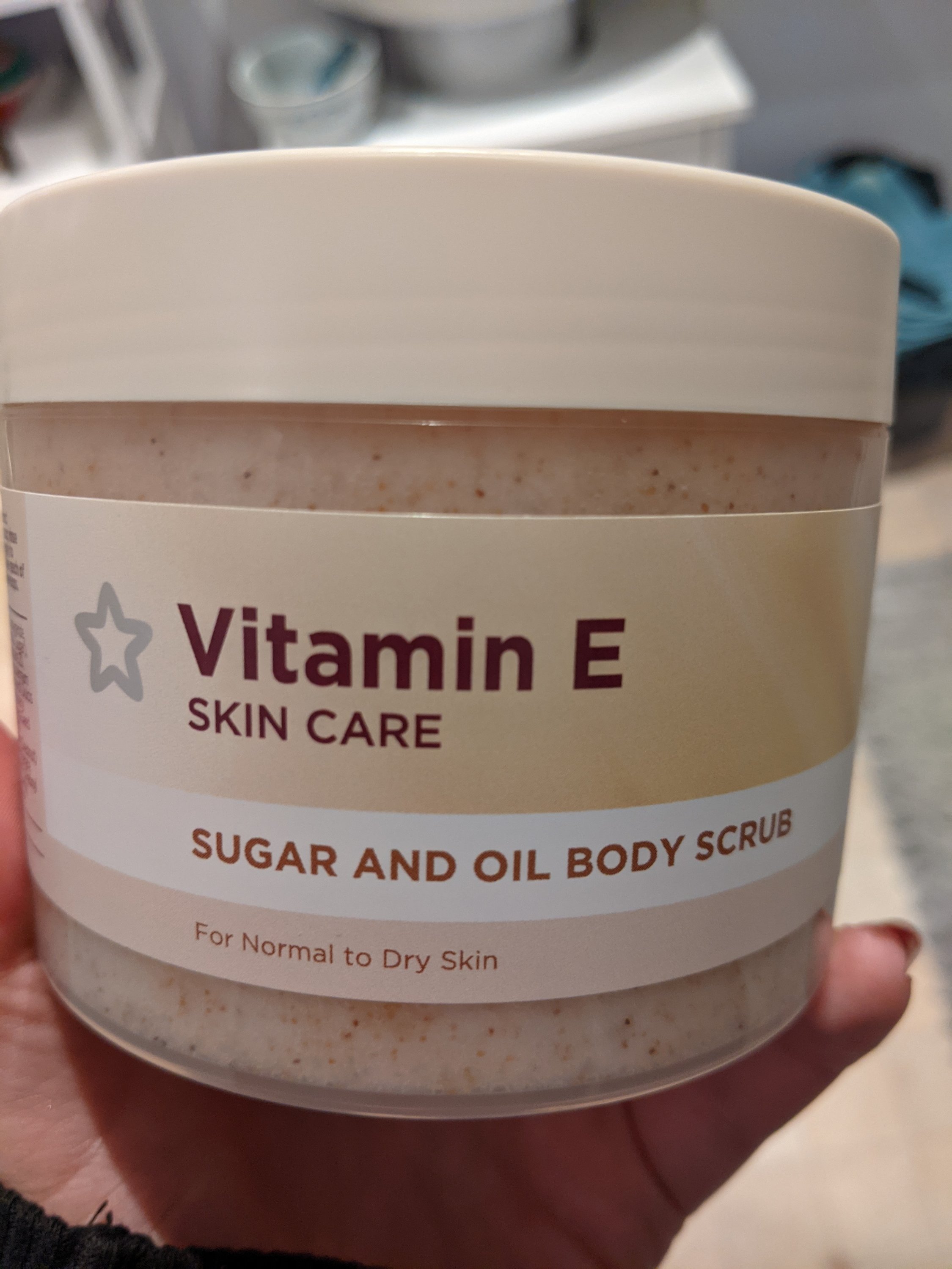 I have used the Vitamin E range from Superdrug before and got on pretty well with it. The night cream I use every night and it really does help hydrate my skin without being really heavy or oily. It also doesn’t make my skin break out or leave my face bright red because of heavy fragrances or chemicals in it. So I decided to try some more of their range, starting with the body scrub.