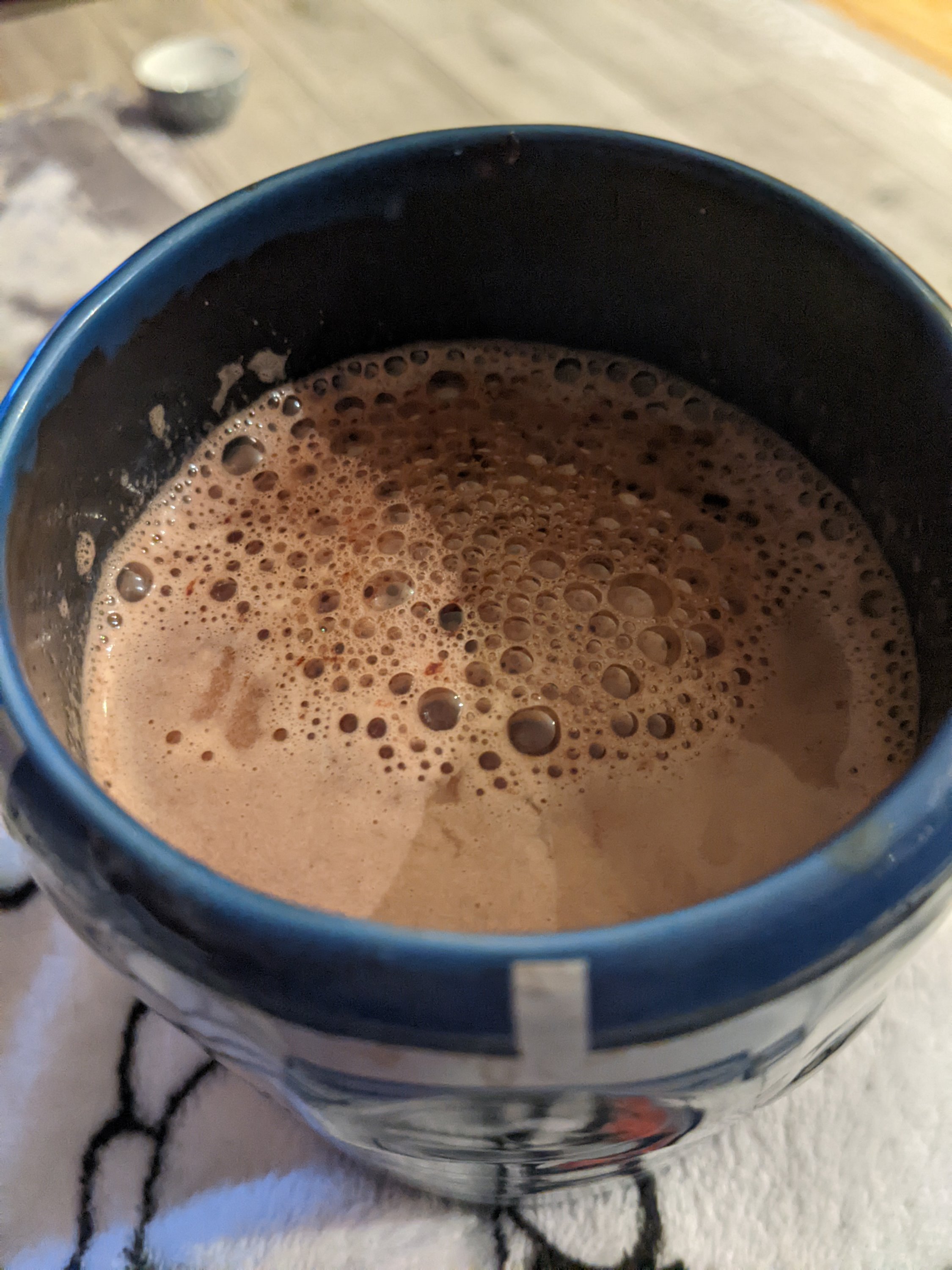 It also doesn’t froth up too well, however again that may be because it is only made with water. Perhaps if you really frothed up milk for this it may be a bit more satisfying. I however do not have such a tool, so this was th best I could manage.