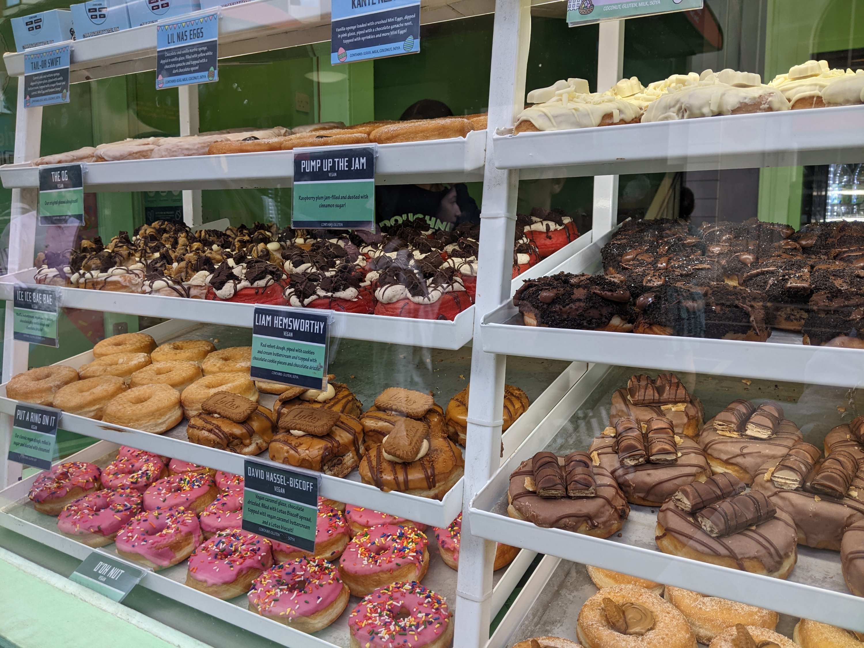 This was actually the store in China Town which has a really good selection of the doughnuts. They are also have the fan favourites, such as Liam Hemsworthy (red velvet based)and the David Biscoff (lotus biscoff spread based) as well as their seasonal specials. Now these doughnuts, as I have said before, are HUGE and we finally decided to share a doughnut rather than have one each.