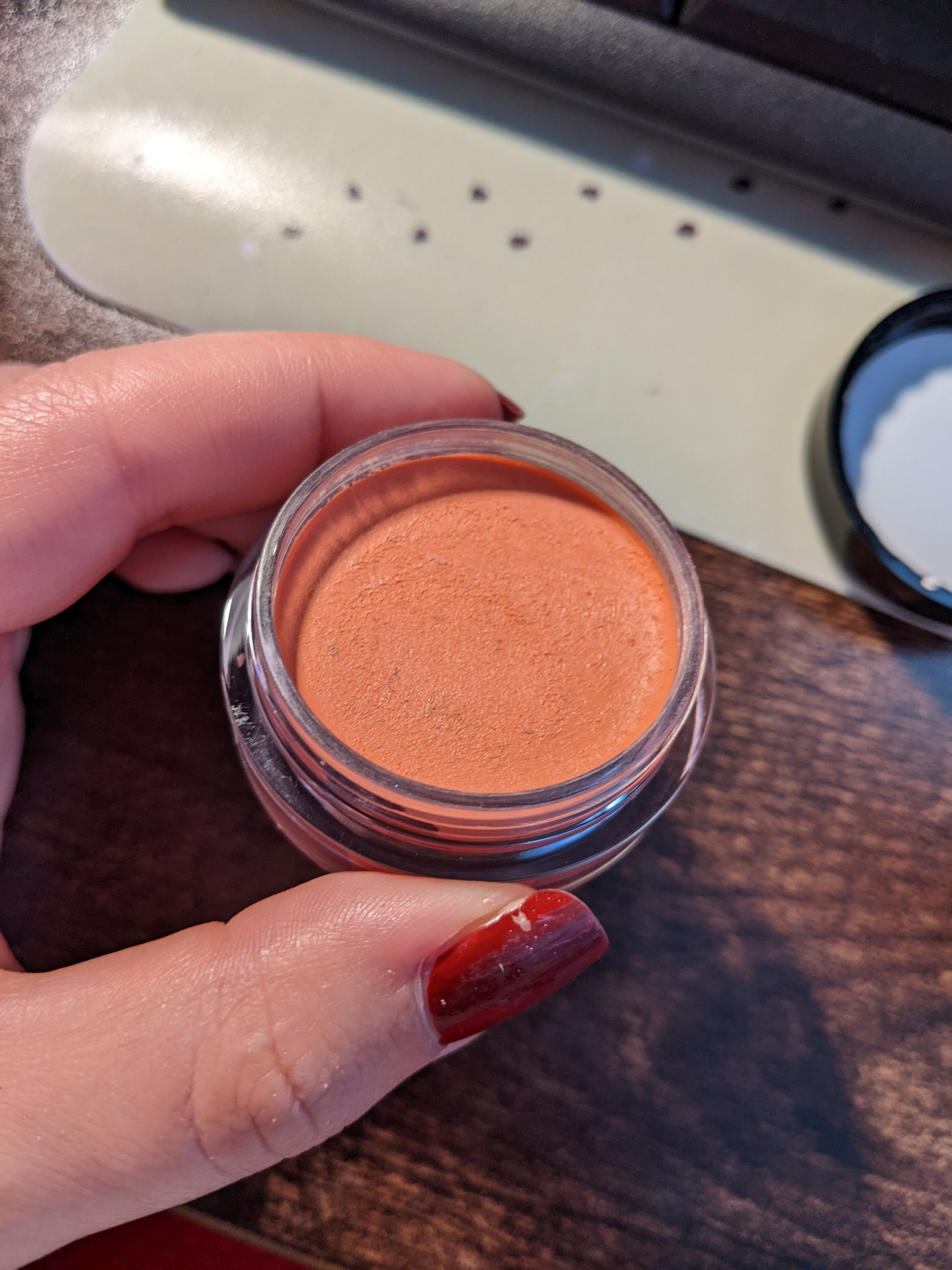 It is very pigmented. I simply swipe my finger across the top and swipe it along my cheek bone, and that is more than enough to give a very soft colour to my cheeks once I have used a brush to blend it out slightly. Occasionally I will use a tiny little extra dab right in the middle of my cheeks to add a little pop of colour, but it is still a tiny amount. I have used other powdered blushes before that seem to take about 3 or 4 layers before you see even a hint of colour, so this putty is amazing. You really don’t need a lot to make a big difference to your appearance.
