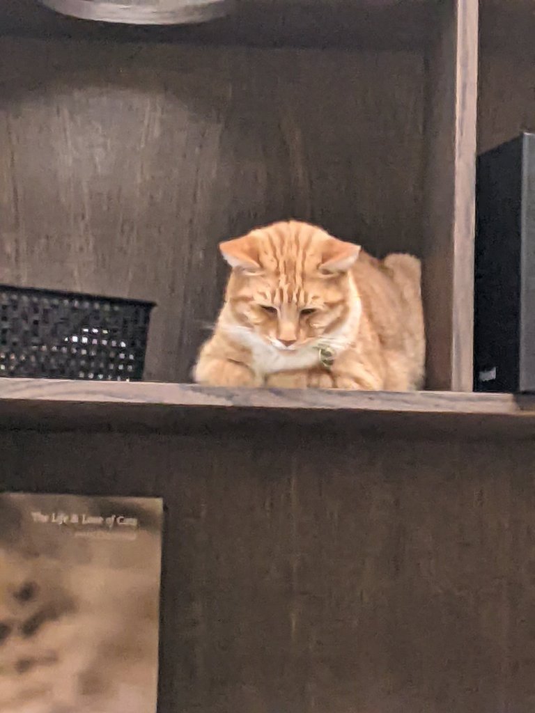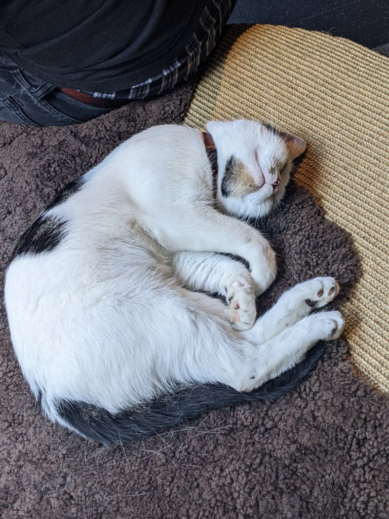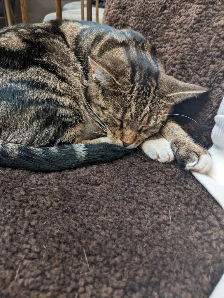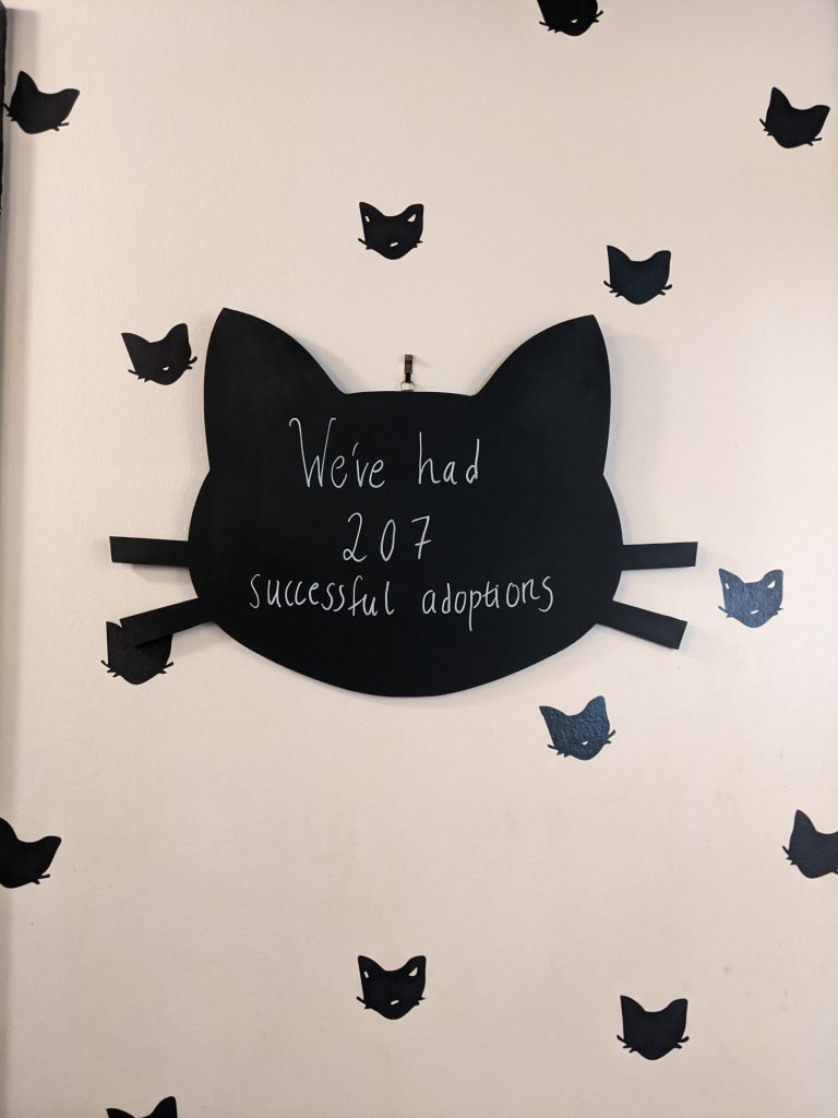 Now I did lose my seat literally as soon as I stood up, so spent most of the visit on the floor. But when the chair stealer looked so comfy and so content, it was hard to be too mad at them. My chair stealer was called Demeter and she was truly the sweetest little thing. She curled up on my chair and accepted all of the head rubs while purring away. She even had a little dream as I saw a few little whisker twitches and paw twitches.