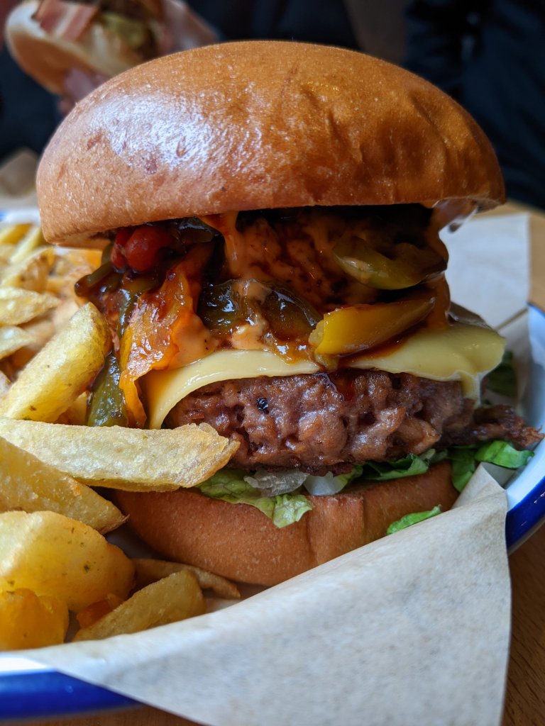 Now I didn’t get much teriyaki taste with it. The mushrooms added a nice extra texture and the peppers were also a good addition to the burger. The actual burger tasted very smoky, which I am assuming is due to the umami sauce. Perhaps the teriyaki works to add some sweetness to dilute the smoke of the umami, but I didn’t get any sweetness at all. It was definitely a very savoury burger, even when you add in the peppers and the teriyaki. But that is not a negative, as the burger was still absolutely delicious. It really did make me feel like I was at a family BBQ and in this horrible January weather (here in the UK it has rained all day for about 17 days straight) the reminder of warmer summer months is very much welcome.