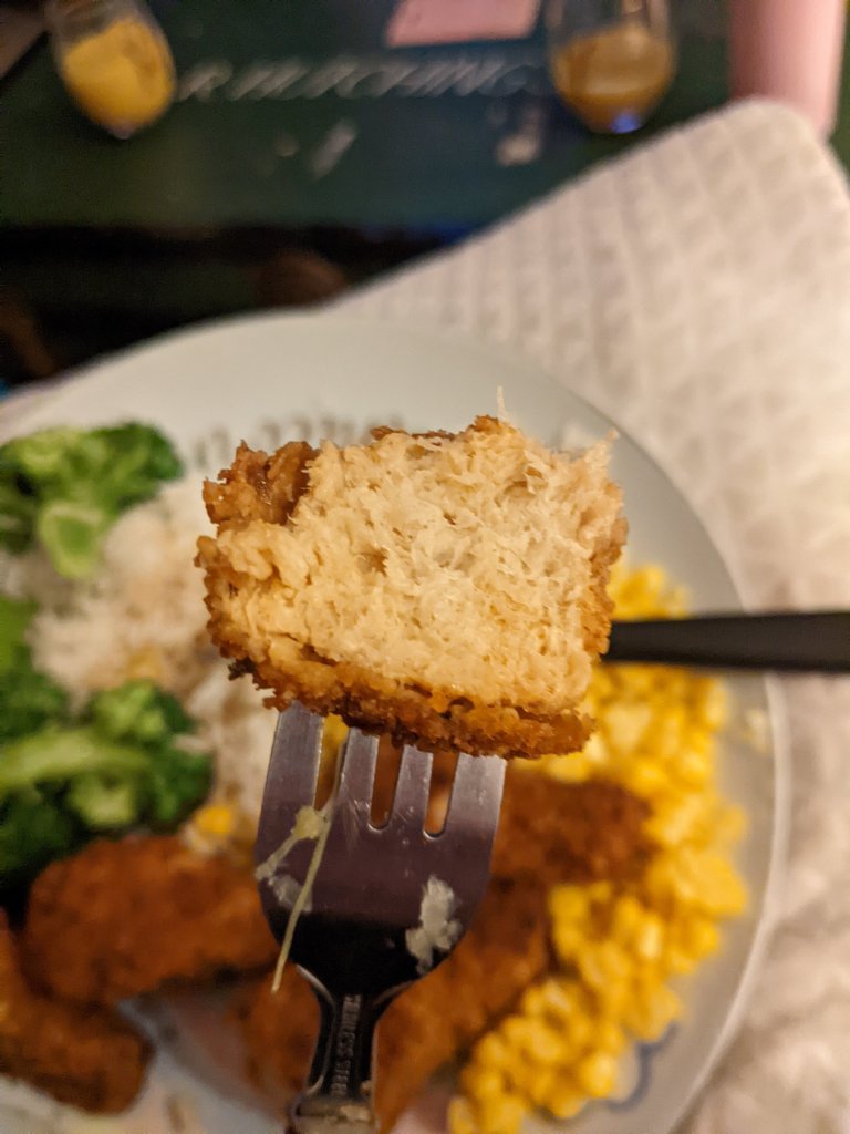 I was very surprised when I had my first bite. The outside was crispy while the inside was surprisingly fluffy. They were also very dense and were scarily similar in texture to a meat chicken drumstick. It was very tasty, having just a slight kick of pepper to make it really pop when you bit down.