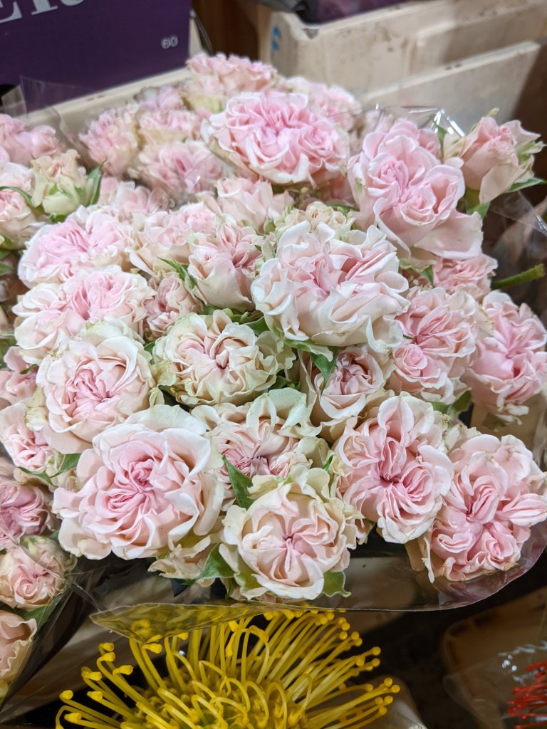 This place is full of flowers. As you would expect. The flowers do change seasonally, so when I was looking in February/March 2023, I was spoilt for choice between roses, freesias and lilies. They also had ranunculi bunches, daisies and all sorts of green foliage, including snapdragons and baby’s breath branches. It was a little bit overwhelming but I did find that a lot of the wholesalers were selling the same sorts of things. Now I love peony roses, however as they are not pet friendly, I decided to go for some beautiful big roses. Peonies were also not in season for my wedding so I could only get them if I spent an obscene amount of money. The roses I picked however were gorgeous.