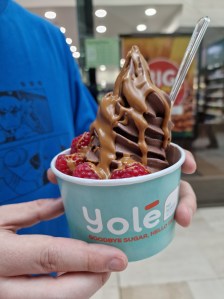 When I visited, I was informed that they had chocolate flavoured soft serve frozen yoghurt. I was told that this stand in particular will always have one vegan option, but the flavour would rotate between chocolate, mango and strawberry. I was a little gutted to not have mango, but chocolate is always a winner.