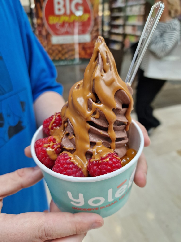 It was delicious. In hindsight, maybe a large was a bit too large. I did finish it but I think I’m done with chocolate ice cream for a few weeks at this point because the chocolate was very rich. It was however also very light so didn’t leave me with any sickly feeling. Biscoff is also a very overpowering flavour, although when mixed with chocolate it really does just taste like a cookie so that’s quite a nice treat. The raspberries were huge and tart, so added a lovely freshness to the chocolate and this flavour combo is also always a winner. I have to admit, as someone who has never had a bubble tea, the boba bubbles were not what I had expected. I don’t know why, but I had sort of expected the bubbles to be gummy, but they actually were like bubbles that burst in my mouth when I ate them. They tasted great, and once again the mango mixed with the chocolate was a great flavour combination. When combined all together, it was indeed a very special treat.