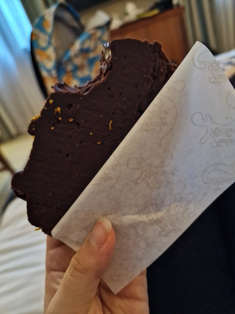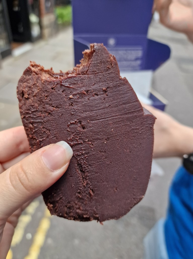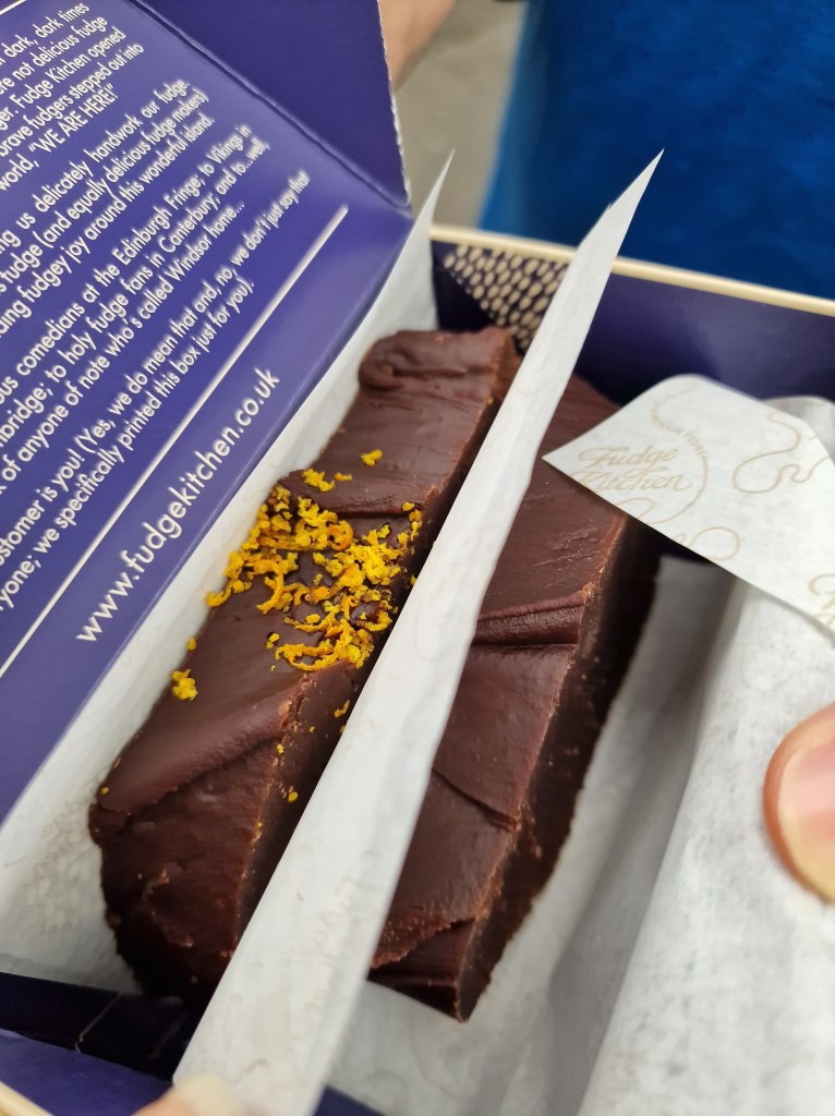 For starters…look at the size of these slabs of fudge! They are truly, slabs of fudge. Like holding a brick in my hand. The store also had a pretty good selection of vegan flavours including chocolate orange, chocolate mint, vanilla and double chocolate. I showed a degree of self restraint and got the three chocolate flavours. The sales assistant at the shop did also say though that the flavours do change from day to day so if you do take a visit to this shop you may have a different selection.