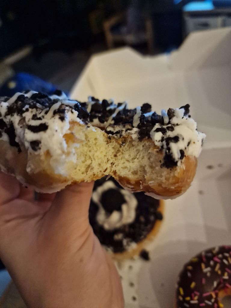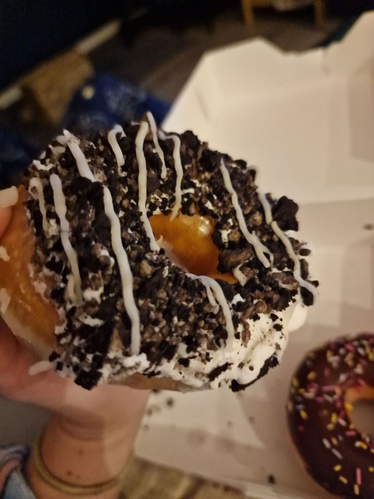 Another of the new Veganuary offerings from Kirspy Kreme is a rework of their usual cookies and kreme doughnut. It is essentially the original glazed doughnut with vanilla cookie kreme frosting, topped with cookie crumb. It is made in conjunction with the chocolate cookie crunch that Krispy Kreme also released for Veganuary this year.