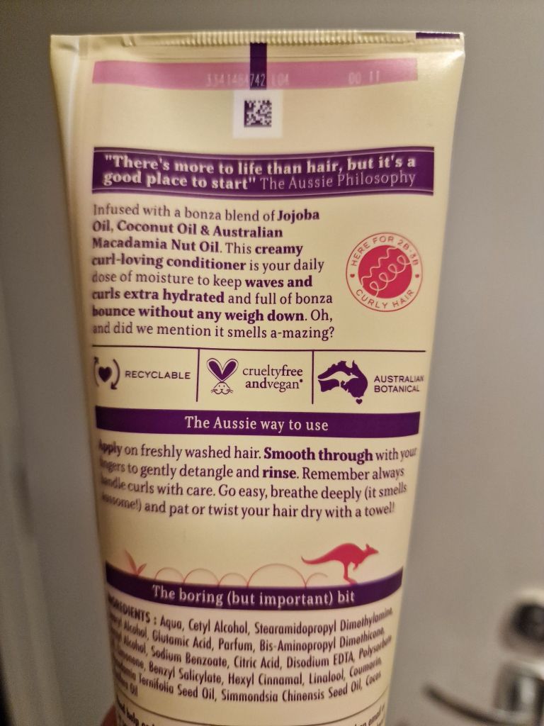 I was pleasantly surprised by how affordable this product is too. I bought this conditioner for £4, which I feel is quite the bargain, bearing in mind that most of the specialist made curly hair ssafe vegan products are at least £5-£10 depending on where you shop. I also see that the Aussie brands tends to be on offer quite often (at least in Tesco in the UK) so will definitely stock up the next time I see it on sale. As I say, I am quite lucky that I wash my hair about once a week, and I think if I wasn’t working out so much I could possibly get away with only washing my hair every two weeks. I like to think it’s the joy of having curly hair that I can hide the grease more, but my hair can also get quite dry so who knows really! this product is nearly empty- maybe two more washes left if I had to guess – so it clearly lasts a decent amount of time between purchases.