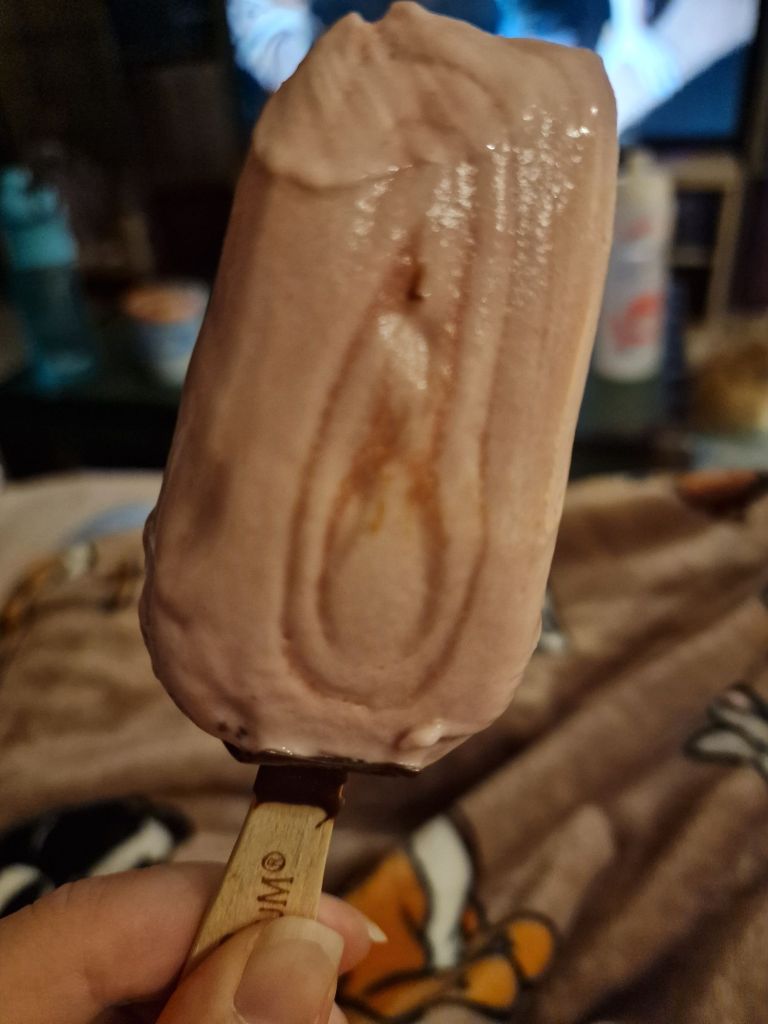I don’t know why I am eating an ice cream in the middle of the English winter, but I just had such a craving! In particular, a magnum type ice cream. With the frozen chocolate on the outside of it. I still believe that nothing beats that type of ice cream. There is just something about a super hard chocolate covering, with the soft ice cream inside, that just…it really does just hit a part of my soul if I am being honest. Best ice cream design.
