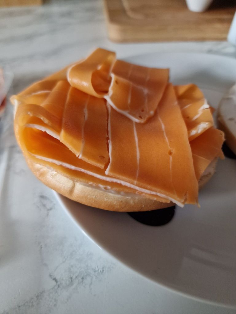 This packet however is quite expensive: ÂŁ3.25, for 6 slices. Which would equate to 3 sandwiches really. One slice on its own is not enough to get any real flavour in your sandwich, so I would say that two slices is needed. Now I do find that Squeaky Bean is always a bit expensive for what you get. The quality is undeniably very high, but the packets are always small and so it does make me a little hesitant to buy them. The main reason we do buy them regularly though is because the macros on their deli pieces are just insanely good, and at our local Tesco they do come onto Clubcard deals very regularly, which does help to offset the cost a bit, usually knocking them down to around ÂŁ2.50, which is slightly more reasonable in my opinion. Unfortunately though, these salmon slices have pretty poor macros, so whilst they do taste very nice, I think I will likely keep these as a treat rather than a weekly purchase. Which I think is what salmon is meant to be in the meat industry so…perhaps that’s what Squeaky Bean were going for?