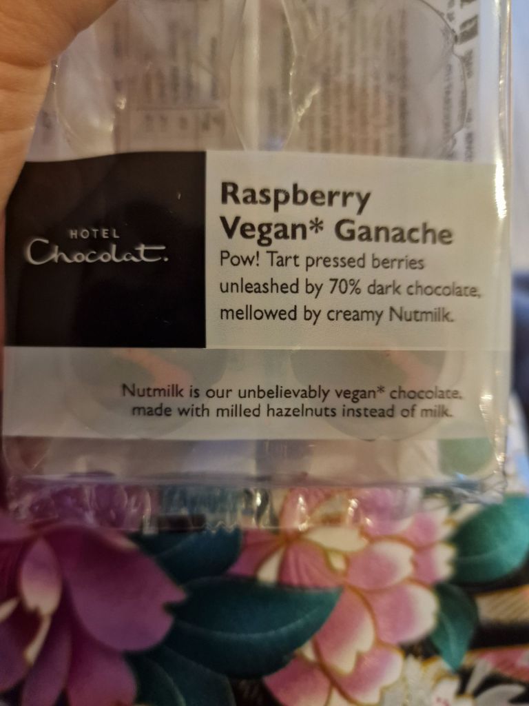Hotel Chocolat are always very decadent chocolates in my opinion. They are what I consider ‘real chocolate’ in that they actually have a percentage of cocoa in each product and tend to have that higher end feel to them all. I must admit though that their vegan options are quite lacking, especially in my local which seems to only have two vegan options on a regular basis. But these raspberry ones are new, so I was quite looking forward to trying them.