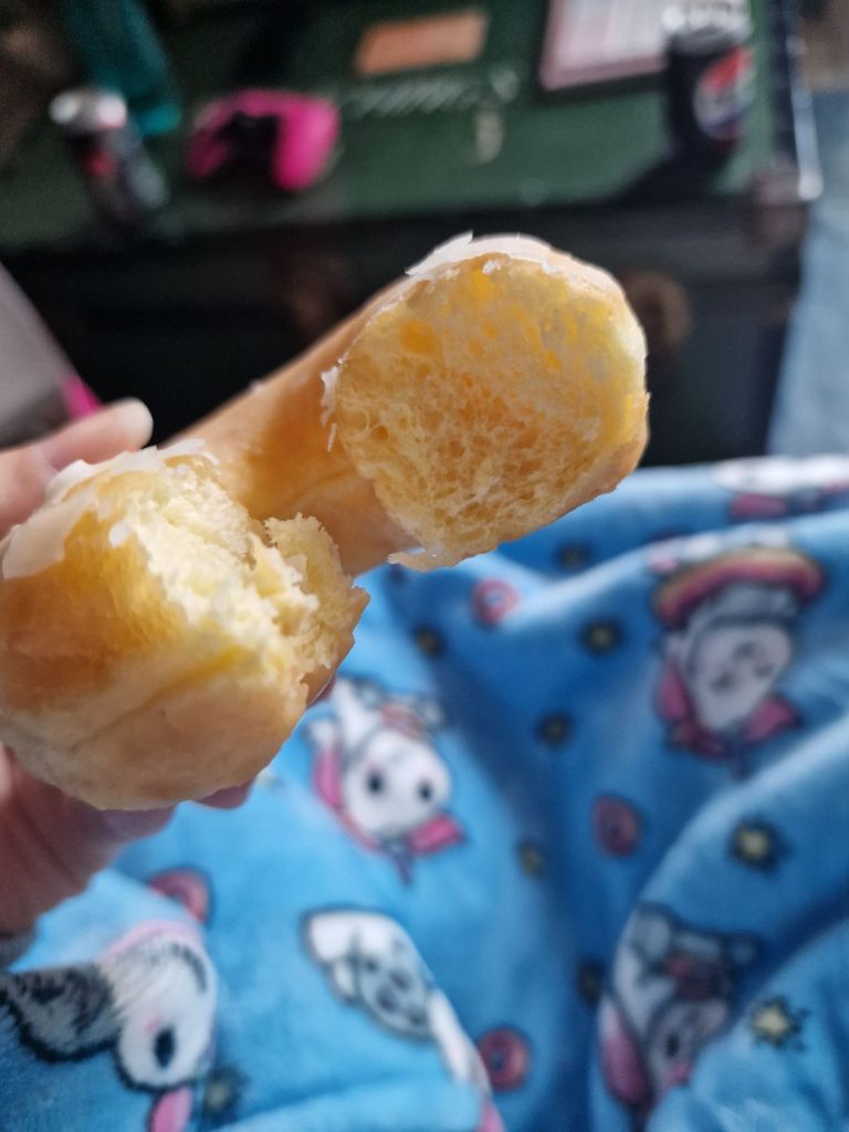 It was therefore hard to tell what the icing also tasted like. It was a basic sugar glaze, as expected, but with how stale the doughnut itself was, I didn’t really get a whole lot of icing flavour. The icing itself also seemed to be quite flaky, which lead to quite a messy meal in all honesty.