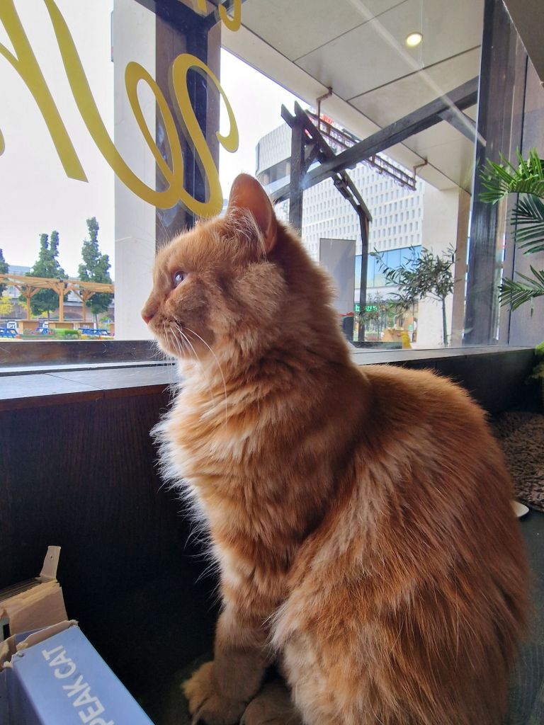 The staff were all incredibly knowledgeable about each of the cats which was also lovely to see. They knew all the different personalities and were very open about which cats were likely to need more space, and which cats were more cuddly or playful. This really helped the experience as we knew which cats we could easily approach and which ones we should wait to come to us, meaning there were no ‘back off’ swipes or hisses. I imagine it would also be very helpful if you wanted to rehome any of the cats, as you could easily ask a member of staff to tell you about the cat’s favourite treats, their habits and routines, and just their overall temperament. It was also helpful for them to point out who was related to who and which came in pairs, as well as which cats were closets to one another. it was nice to see that the staff who worked there clearly cared about the cats in their care, and were so excited to talk about their personal favourites and share little stories about their time at the café.