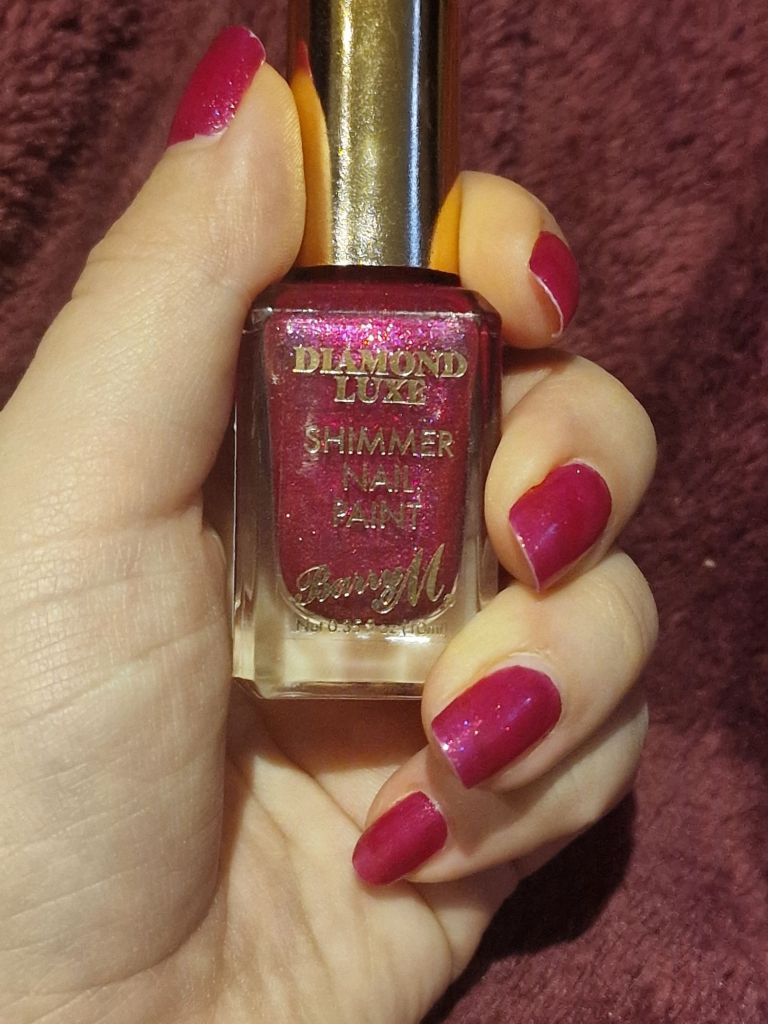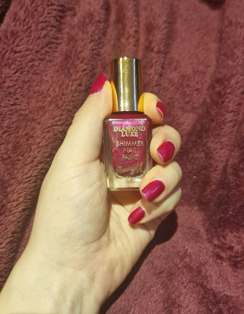 I bought the Diamond Luxe shimmer nail polish in colour ‘Finest’, which is a deep pink glitter colour. I tried to get a good picture of the sparkles but I don’t think I have done it justice. This is also a nail polish that sparkles when you move, so still photos again don’t really show the shine that they have. They do look glittery, but wearing the polish on my nails and going about my business, there are definitely certain lights where they really do sparkle. I think this is perfect for the festive period as it is quite an understated level of sparkle, but just enough to make you feel a little bit special. The colour is lovely too and as usual, Barry M really excel in their highly pigmented colours.