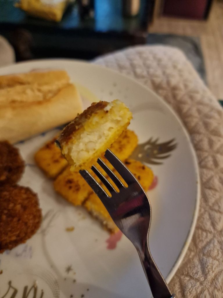 Luckily, I think these are the first I have tried that are a very good replica of the fish version. These vegan fish fingers are light, fluffy, and also flaky on the inside, and do have quite a strong fish flavour to them too. It is nothing overpowering, as fish isn’t exactly a great taste as it is, but definitely enough to make me do a double take. The inside I believe is tofu, and whilst it is packed quite tightly, it is still light and fluffy and complements that crispy outside really well.