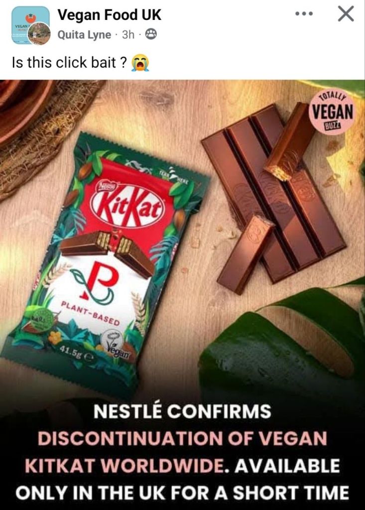 An article from Plant Based News stated that the vegan KitKat would be discontinued everywhere except for the UK, but then other outlets such as the Vegconomist suggests that it will only be available in the UK for a short period longer before being removed from the shelves entirely. So at this point I am not certain whether I should start stock piling or not.