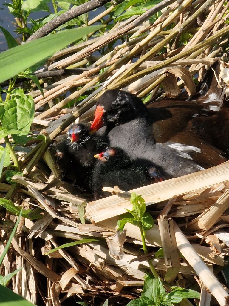 The resident moorhen eggs have begun hatching and the fluffy chicks are just too much cuteness to handle!
