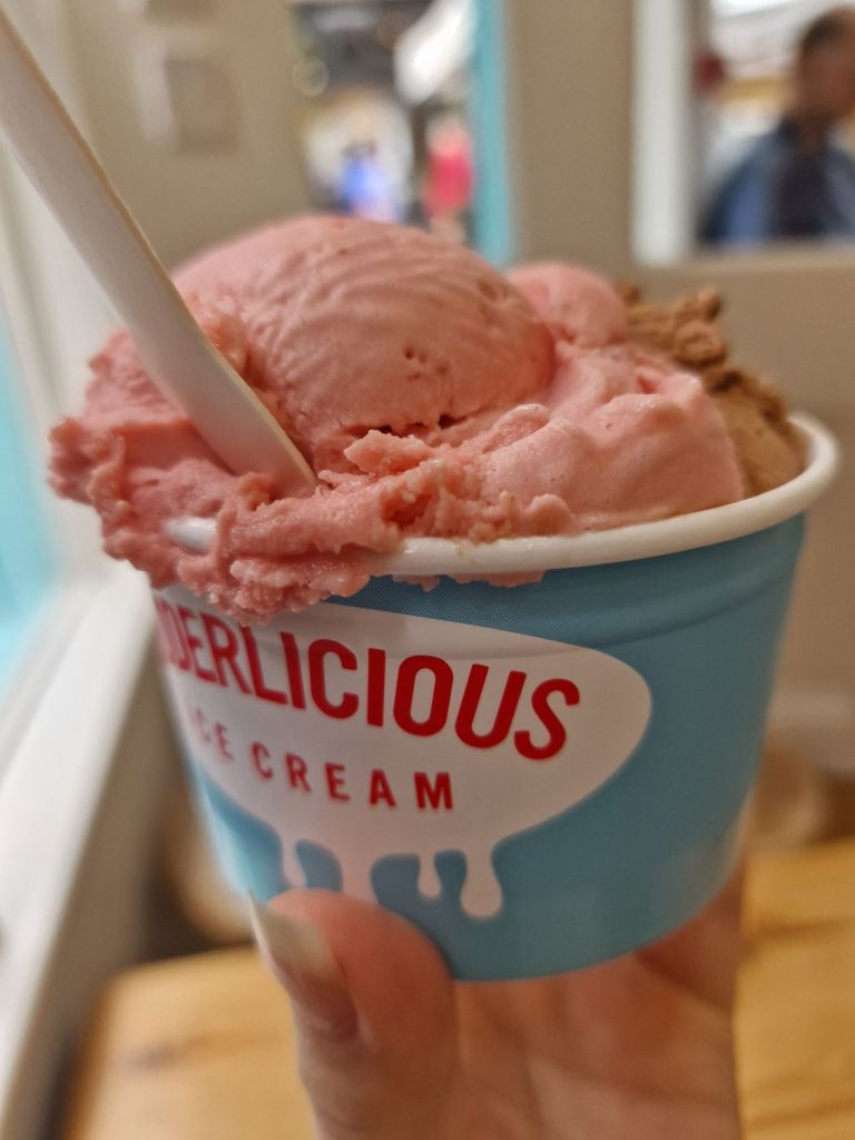 The strawberry lemonade was so tasty! It has a very subtle sweetness to it, but it mostly had this very fresh, tart, fruit strawberry flavour that was very refreshing and definitely woke me up a lot! It is a strong flavour, which I very much appreciated, and yet it doesn’t taste artificial. It tasted like a fresh bunch of strawberries and was a really great summer flavour. The ice cream was also very creamy, but didn’t feel heavy with it.