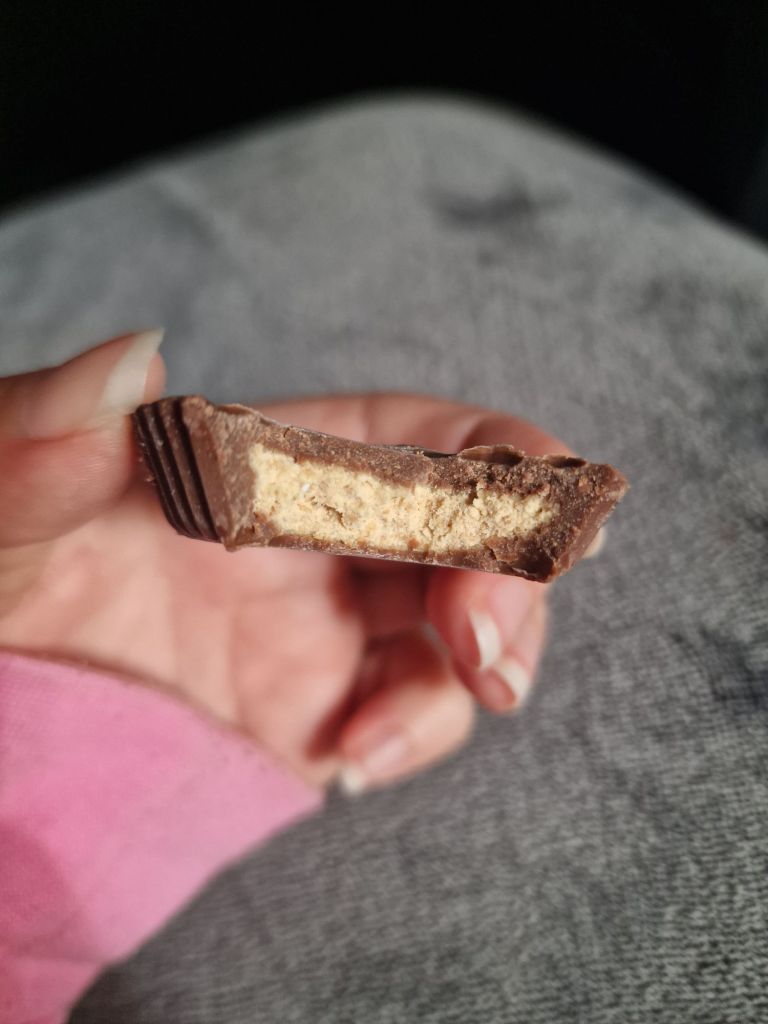 Annoyingly, this was kind of gross. There was a very strong peanut butter taste, yet it tasted very artificial. It reminded me of the nut free powdered peanut butter you can buy, for those who want the protein benefits of the nuts but are allergic to the actual nuts, and that is very much what this cup tasted like. It also had that very powdery texture to it, where it felt like the actual paste hadn’t been mixed enough so it still had quite a grainy texture to it, which was very disappointing for me as I hate grainy textures. The chocolate part was fine, in that is tasted like a standard chocolate. It had a nice crunch to it when you bite into the cup, but the paste really took away from any creaminess that the chocolate may have had. It also had that very artificial flavour to it, where it didn’t really taste like anything until a few moments later when you would get a very subtle peanut butter flavour, but again this was a very artificial flavour rather than a legitimate peanut butter.