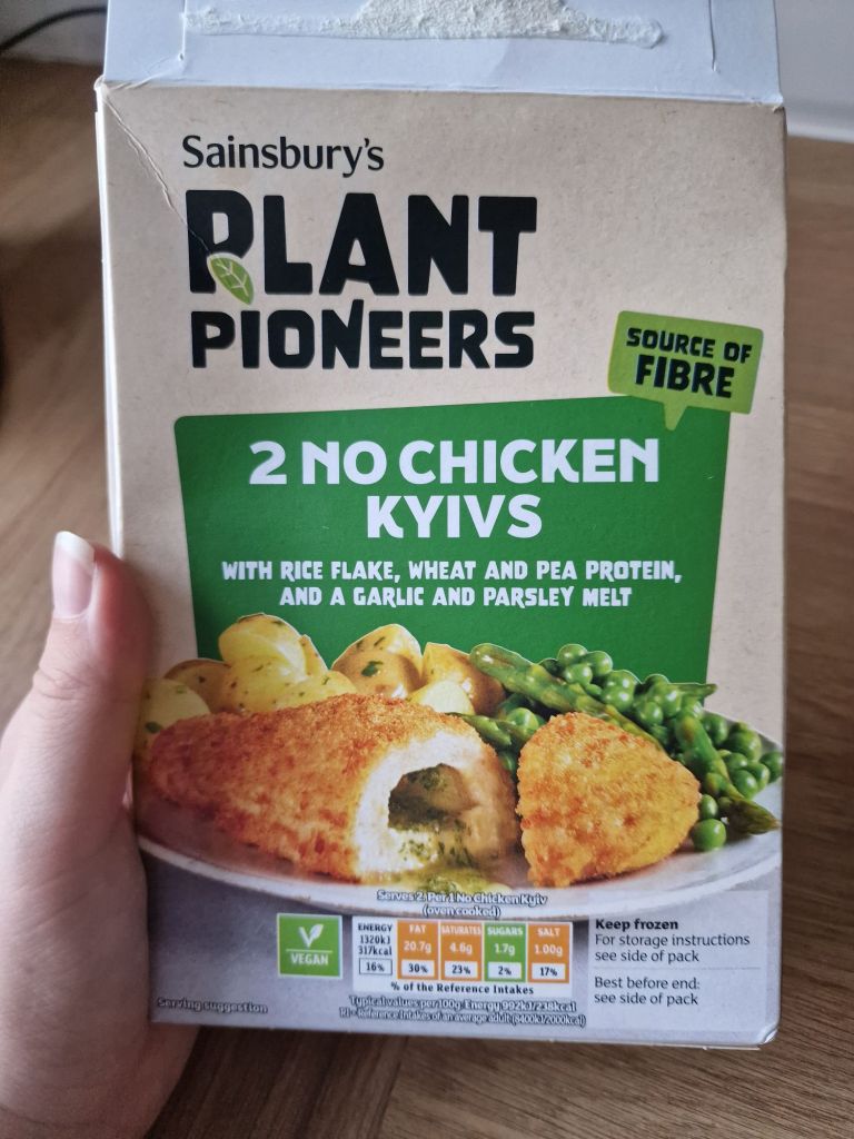 Plant Pioneers is only available at Sainsbury’s stores, as it is their own brand vegan range. A packet contains two servings (so two kyivs) and cost me £1.99, which is a very cheap option for a very filling dinner. It is also frozen, so is a very easy option to keep in your freezer for those comforting meals that require very little work to prepare.