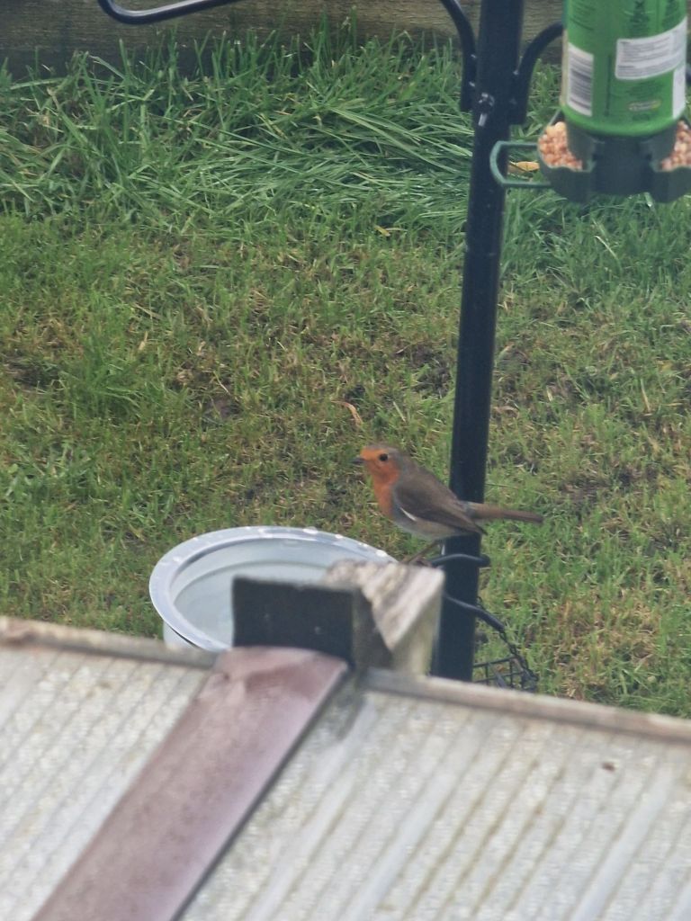 This little robin stopped by for a little bite to eat, and for a little drink from the bird bath. I did not expect to feel such a sense of pride, knowing that my bird feeder has helped even one bird this winter.